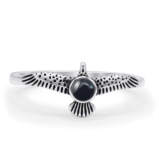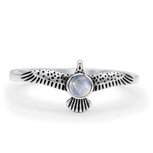 Round Lab Created White Opal Solitaire Oxidized Ring