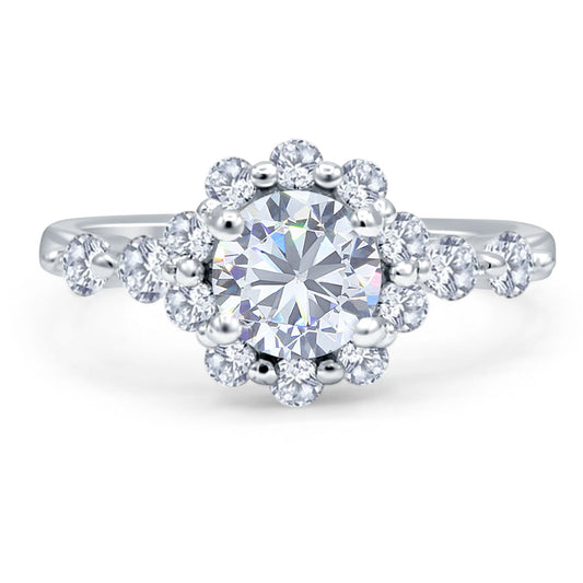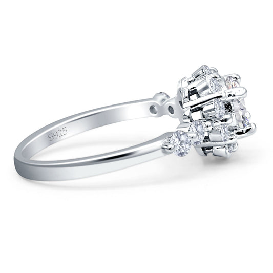 Round Lab Created White Opal Sunflower Oxidized Ring