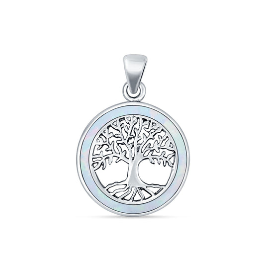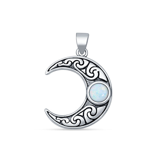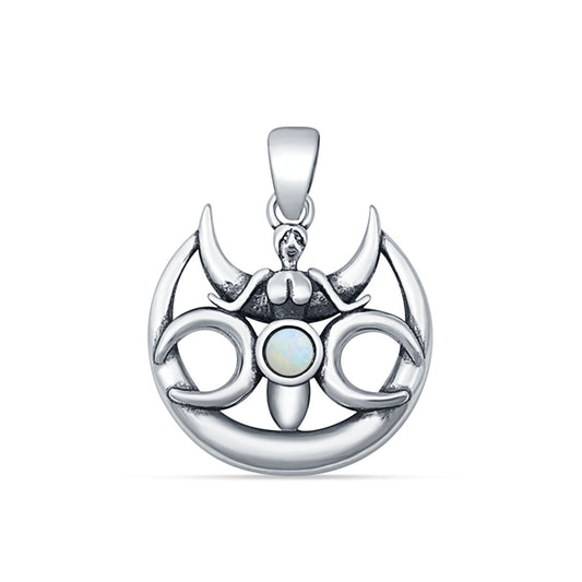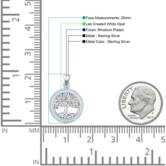 Lab Created White Opal & Oval CZ Solitaire Pendant