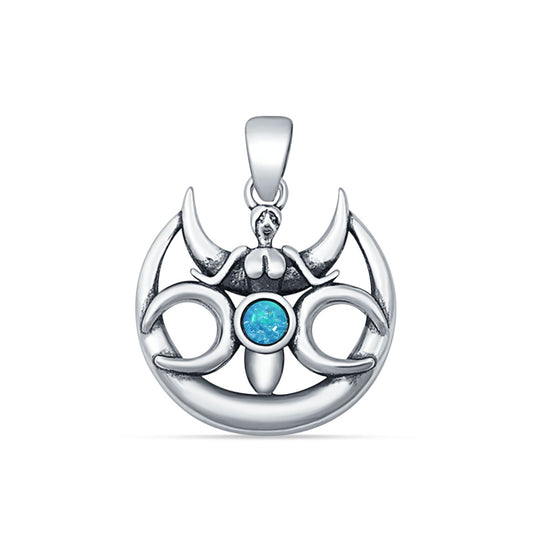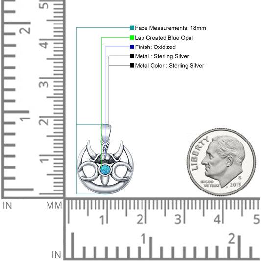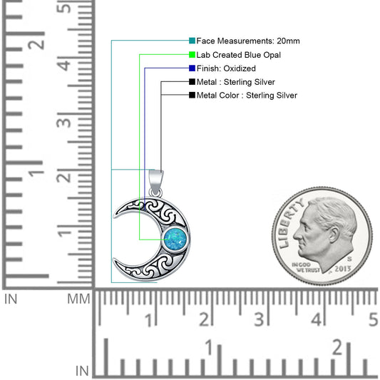 Round Lab Created Blue Opal Moon Oxidized Ring