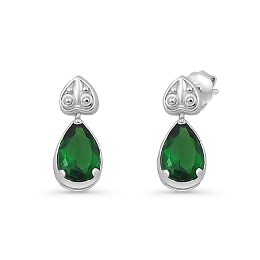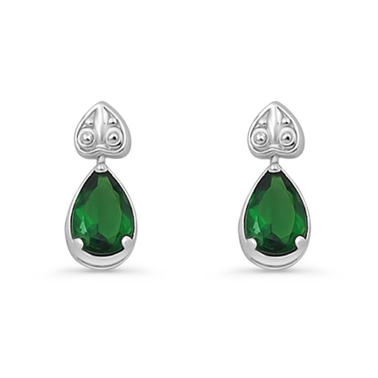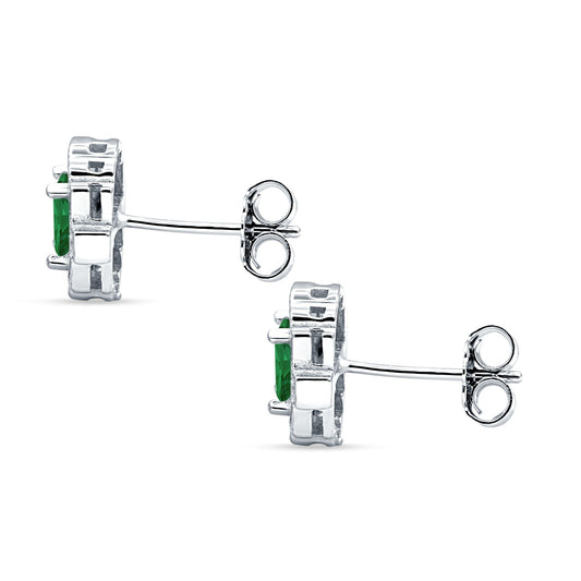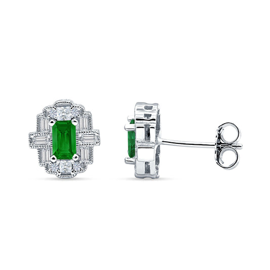 Solitaire Stud Earring Green Emerald CZ Black Tone