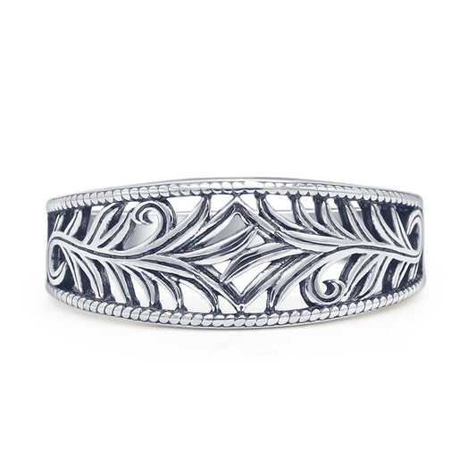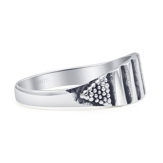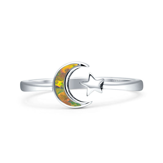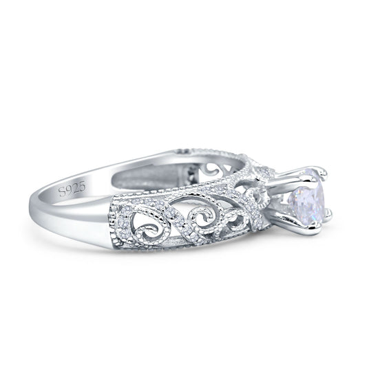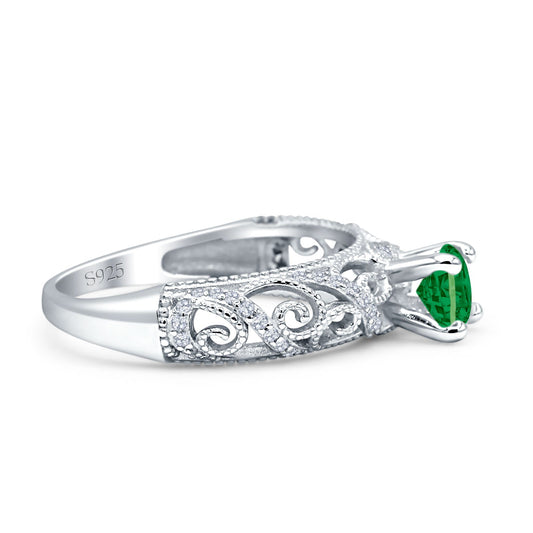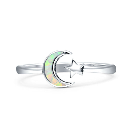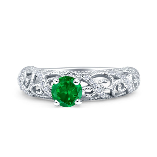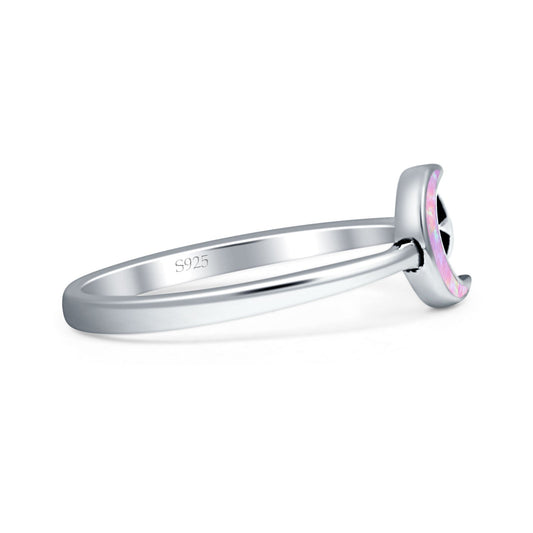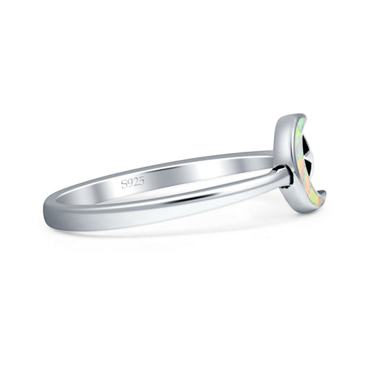 Round Lab Created White Opal Solitaire Oxidized Ring
