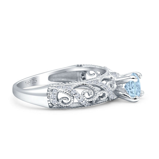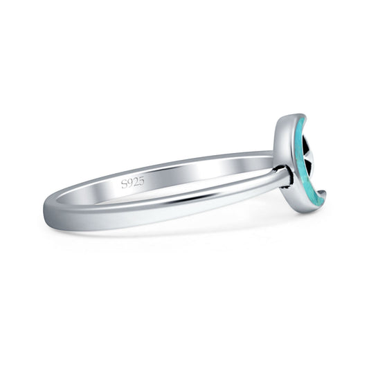 Round Lab Created Blue Opal Solitaire Oxidized Ring