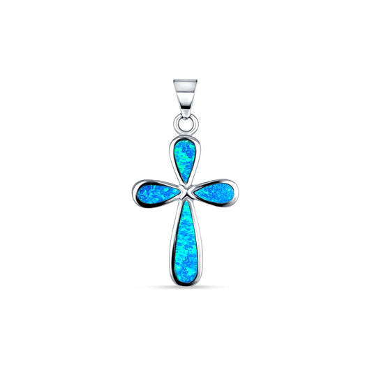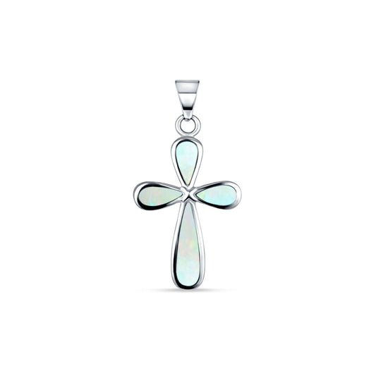 Lab Created White Opal & Emerald Blue Sapphire CZ Pendant
