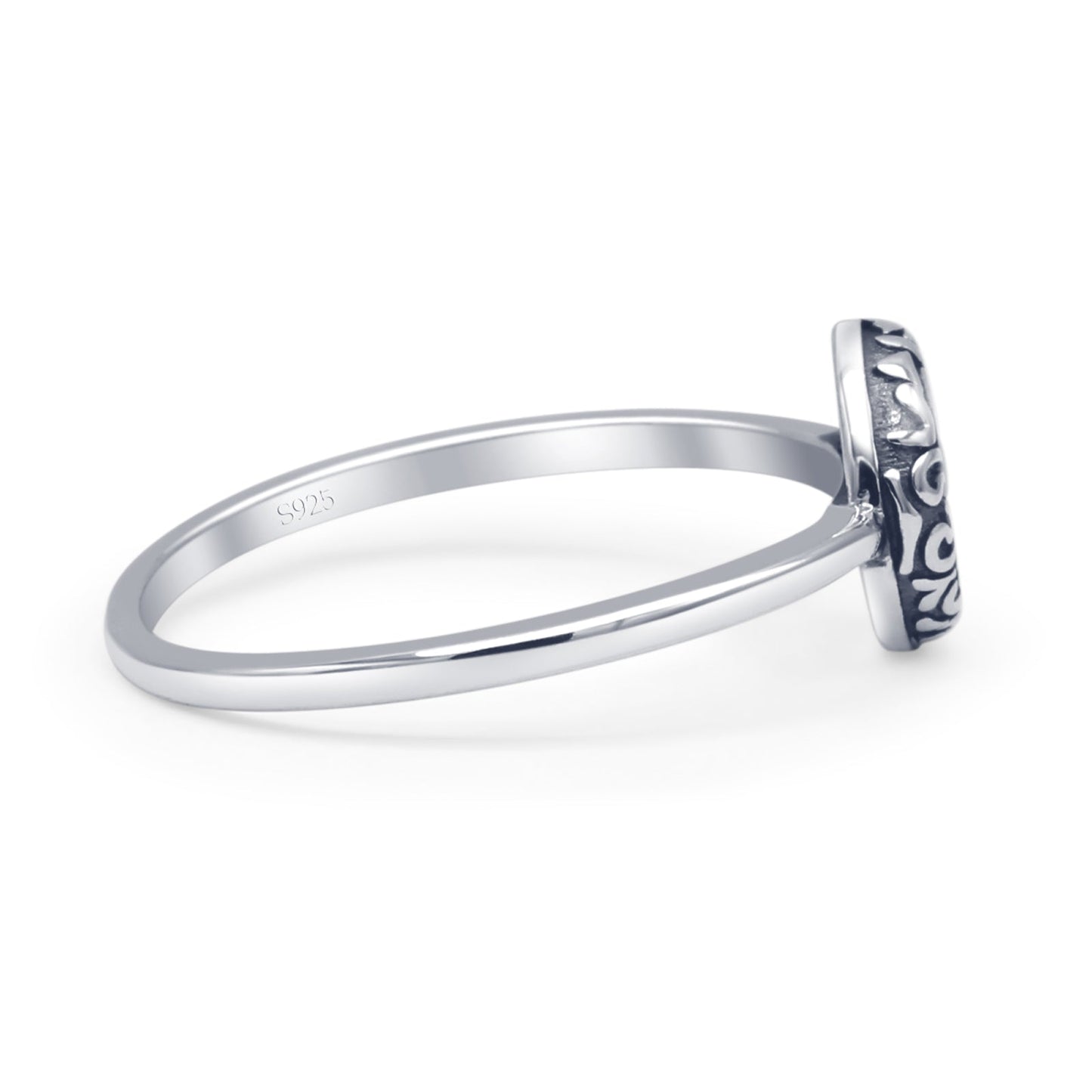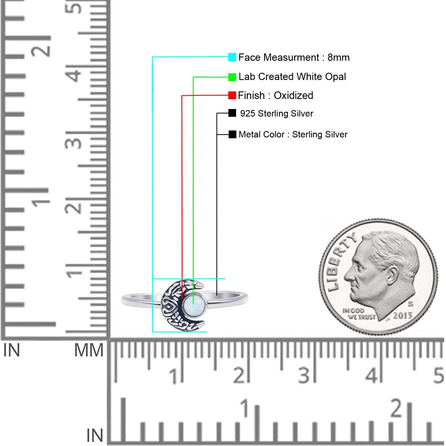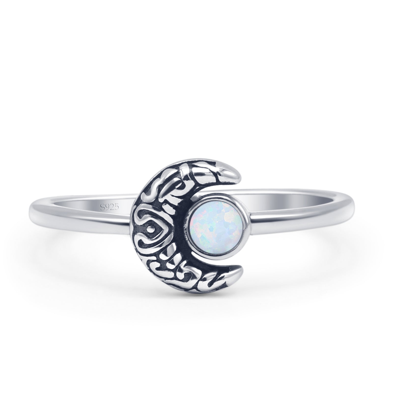 ☉Ring Design: Oxidized Round Lab Created White Opal Crescent Moon Ring.