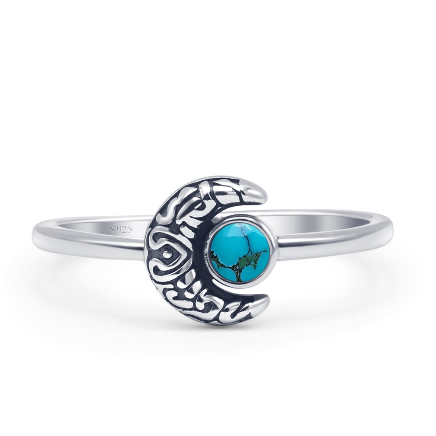 ☉Ring Design: Oxidized Round Turquoise Crescent Moon Ring.