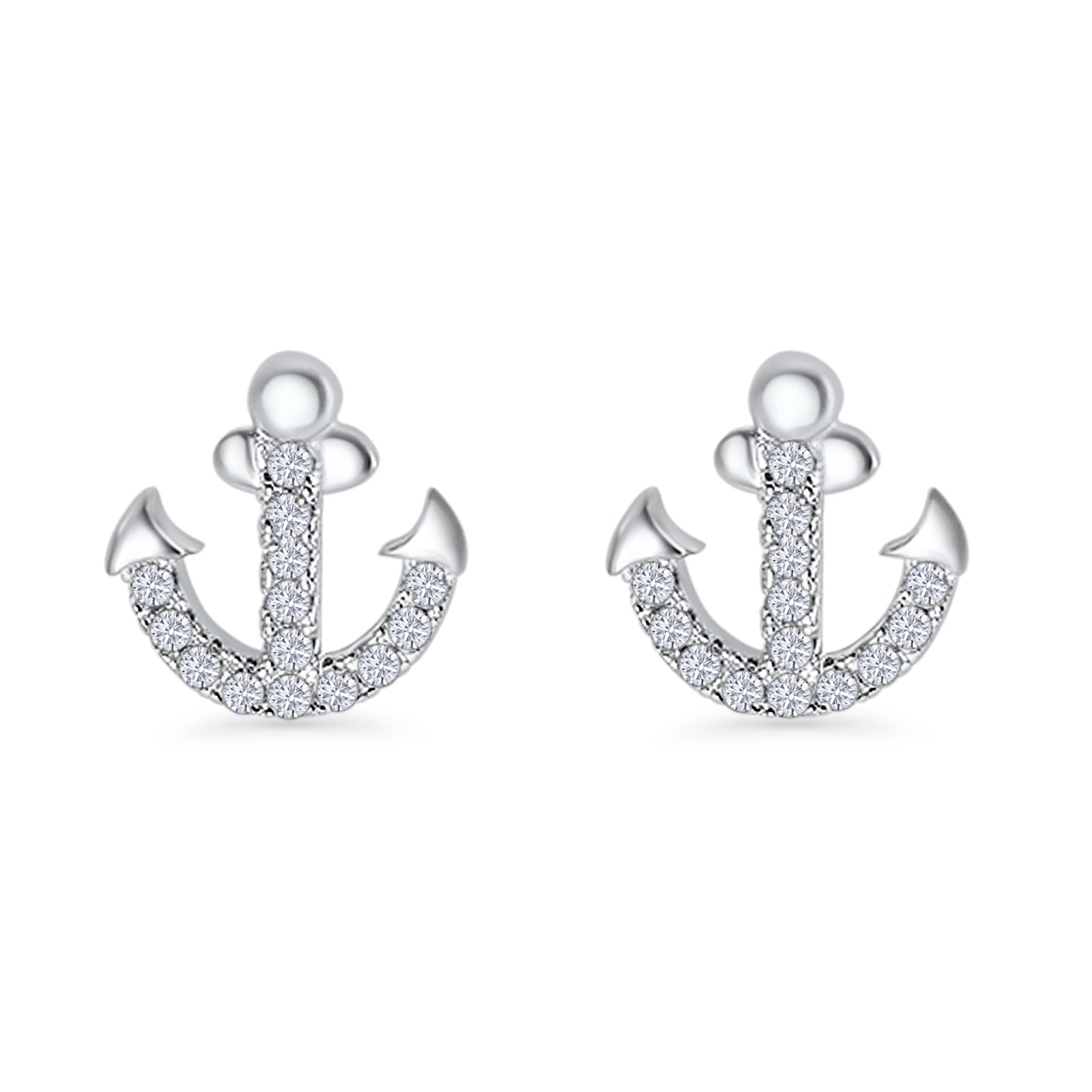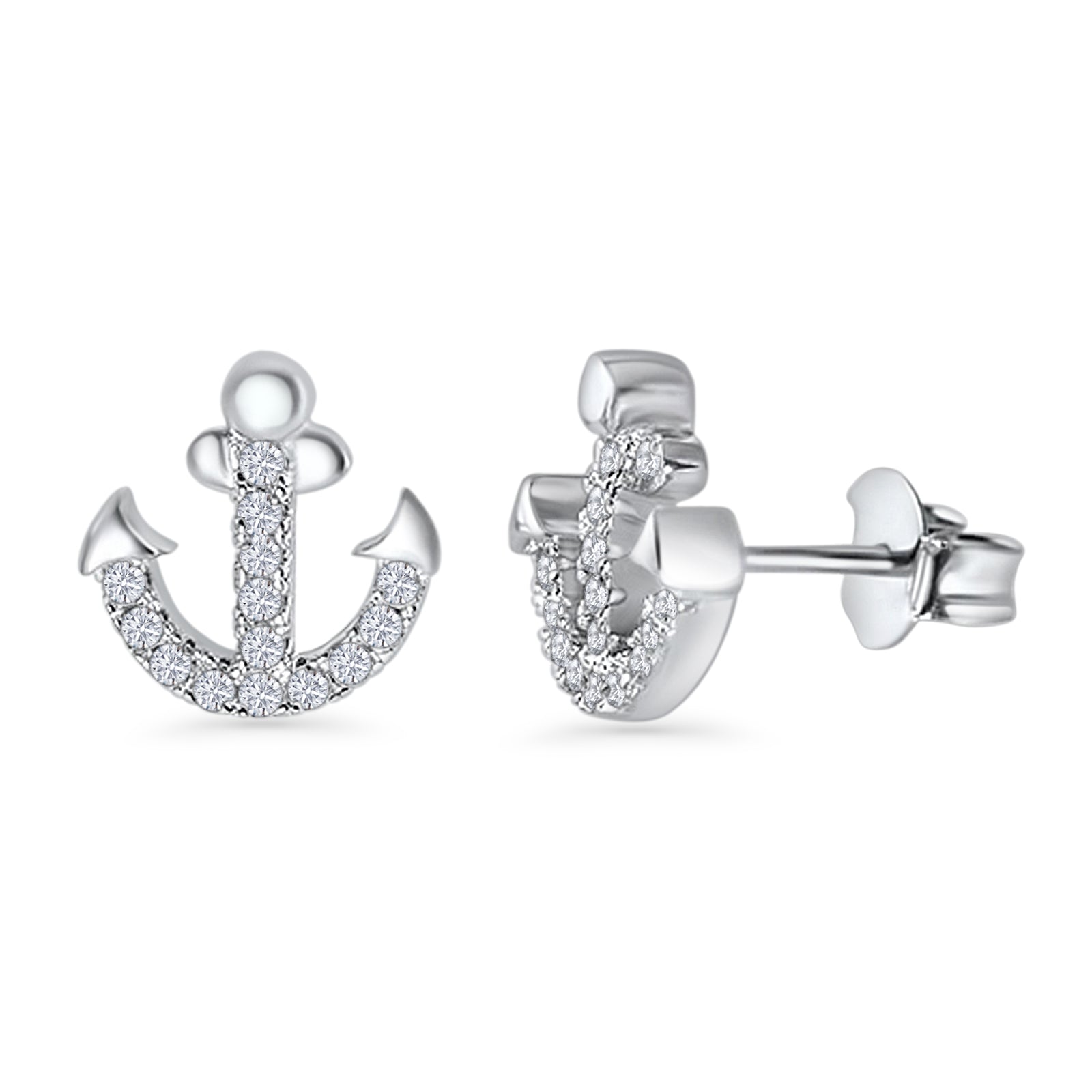 ☉ Design: Anchor Cluster Cubic Zirconia Stud Earring .