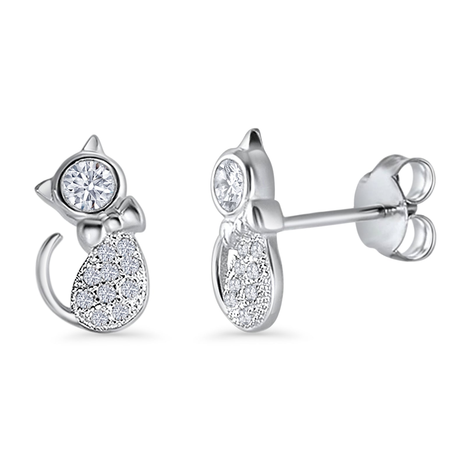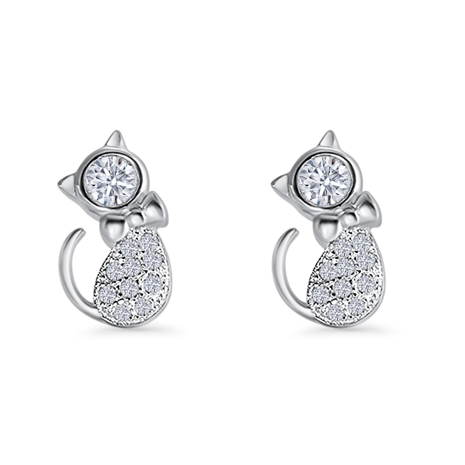 ☉ Design: Cat Cluster Cubic Zirconia Stud Earring .