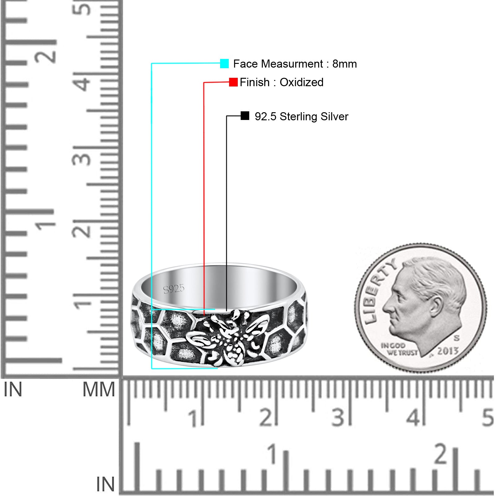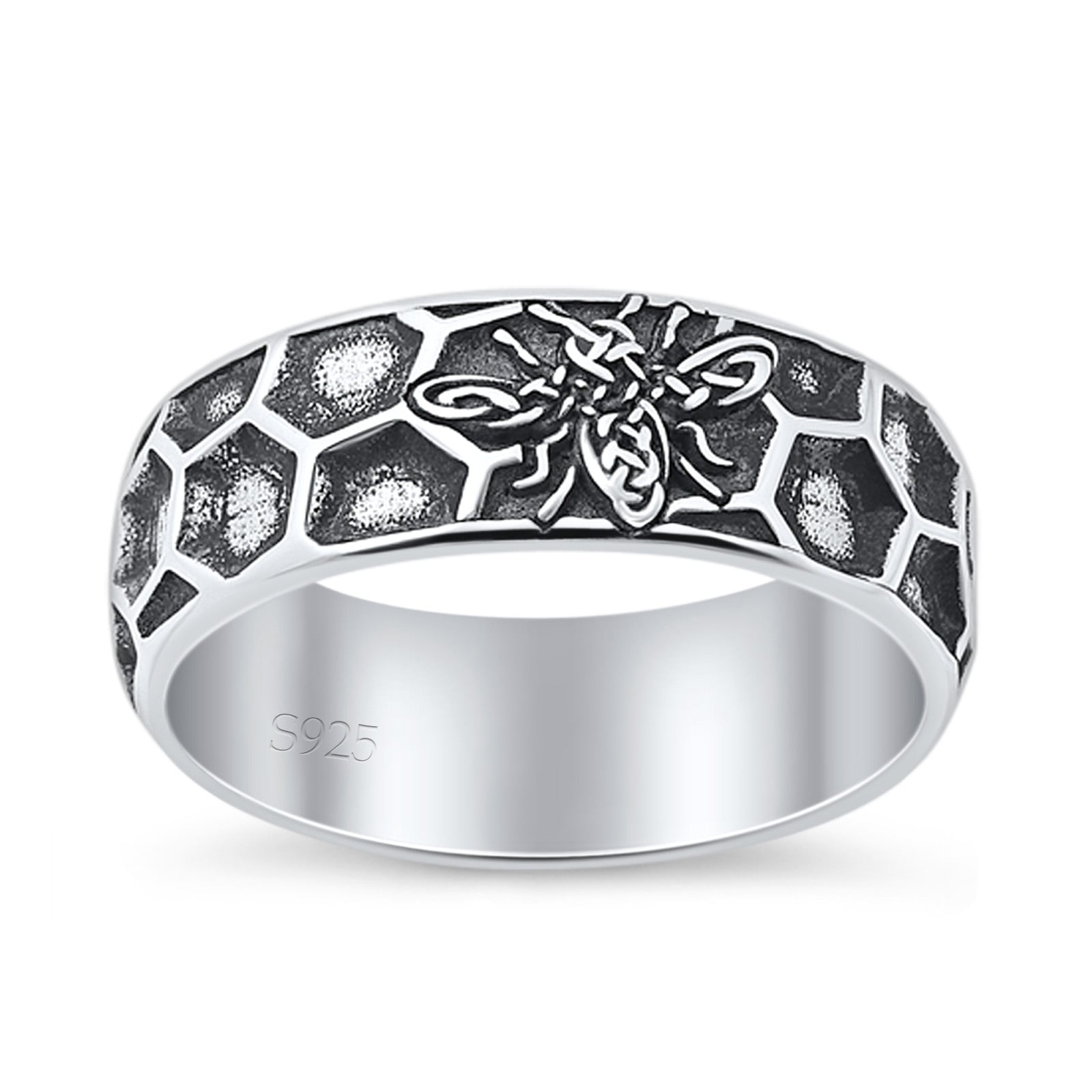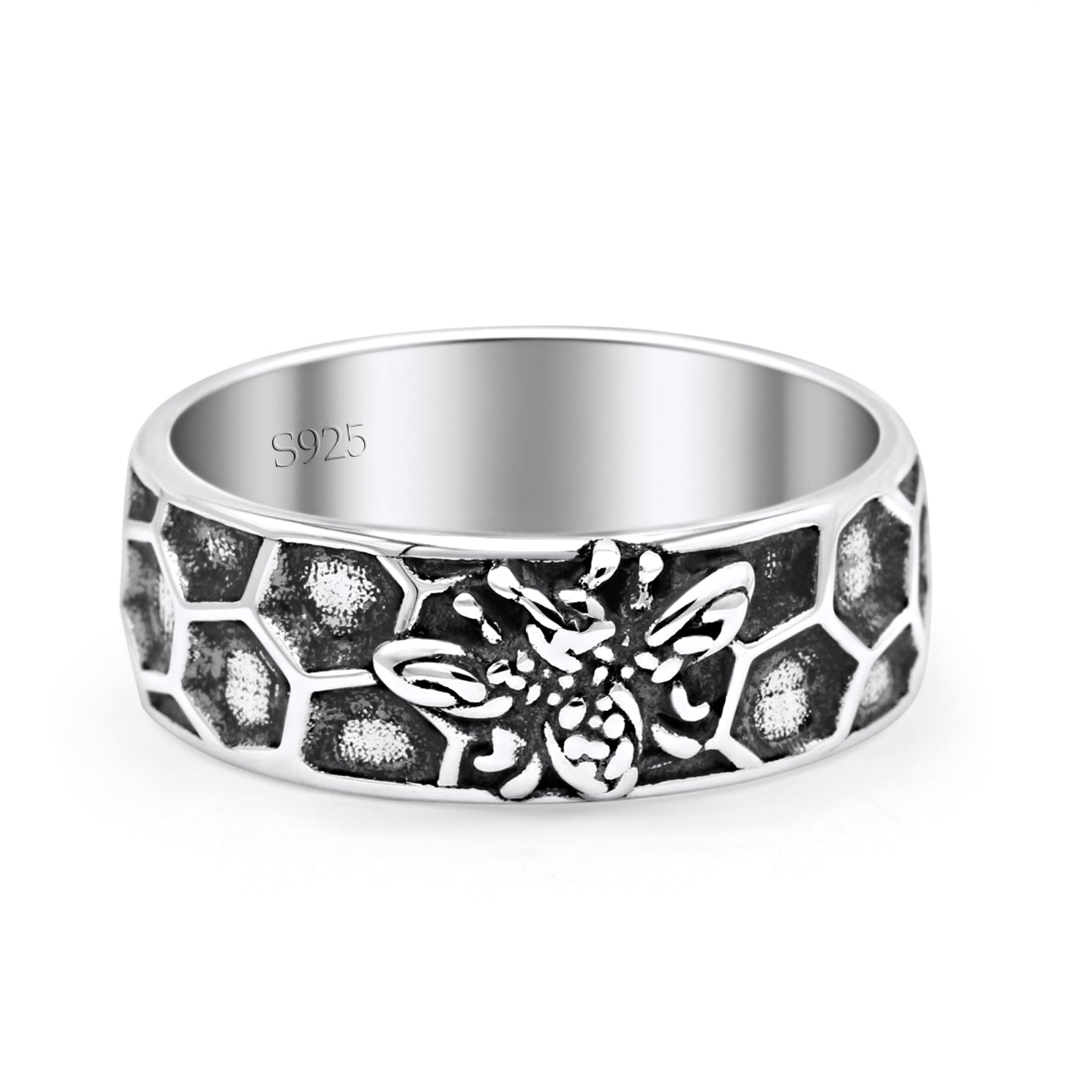 Celtic Honey Bee Comb Design Oxidized Band Ring Thumb Ring 8mm