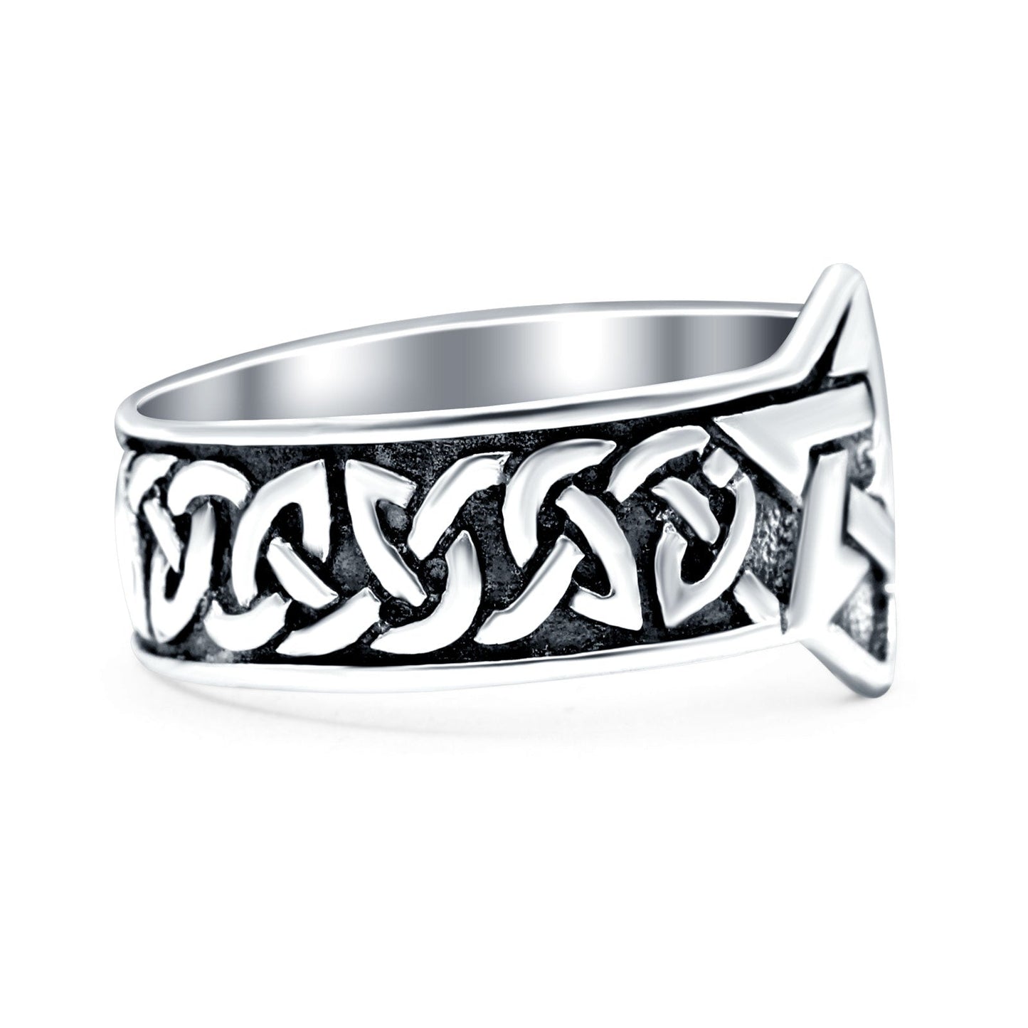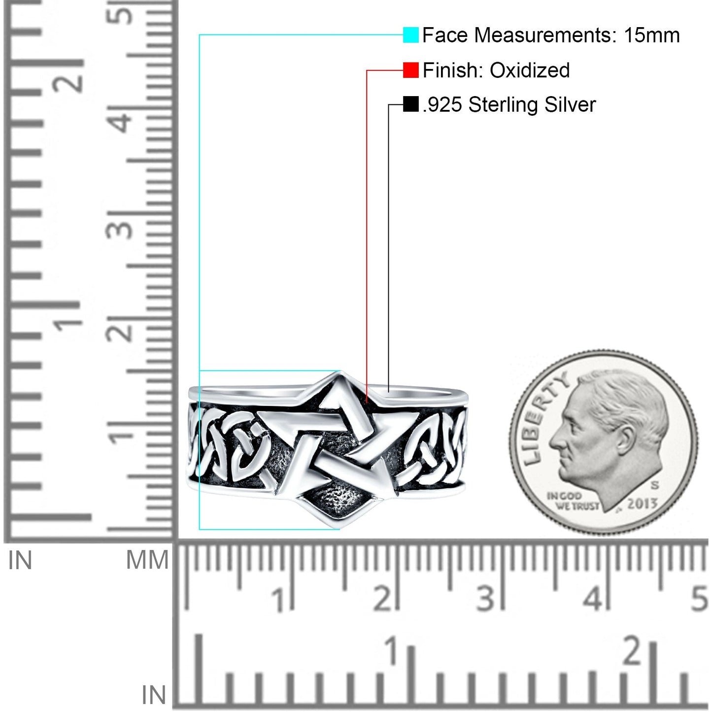 Celtic Pentagram Star Oxidized Band Thumb Ring (15mm)