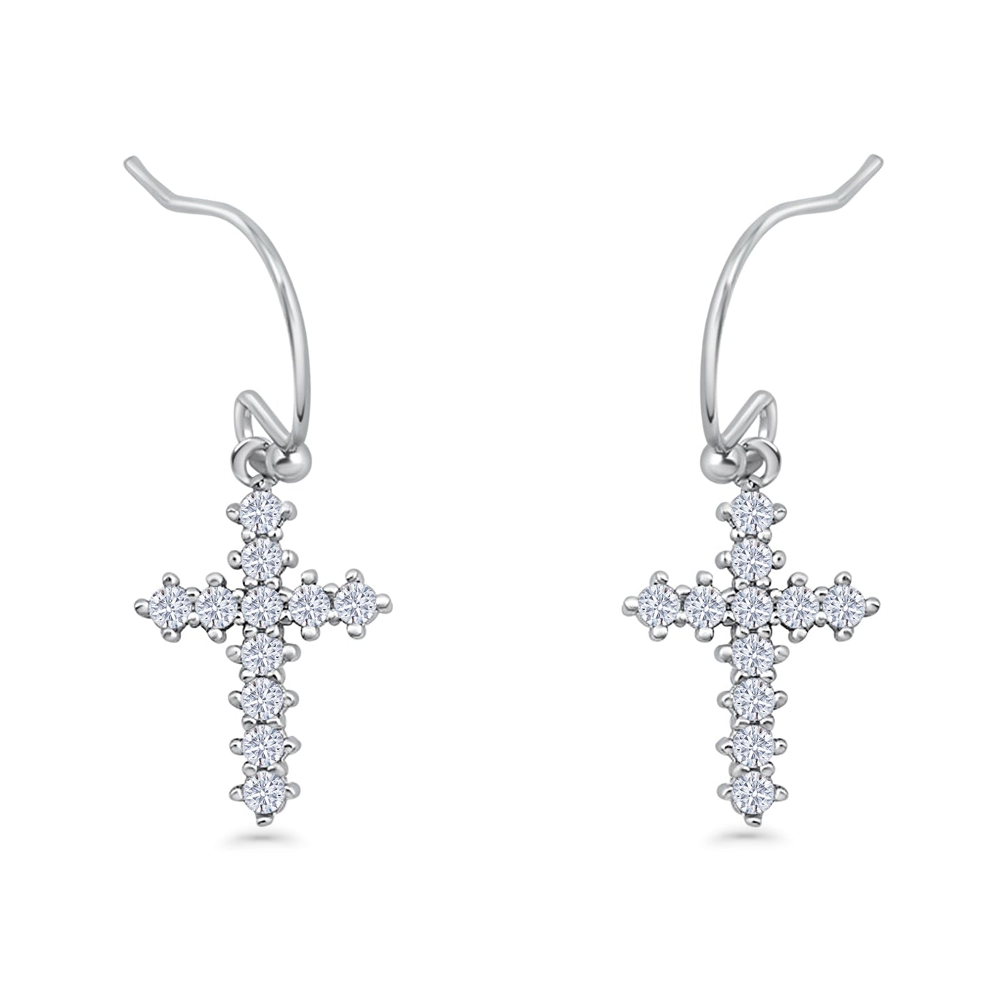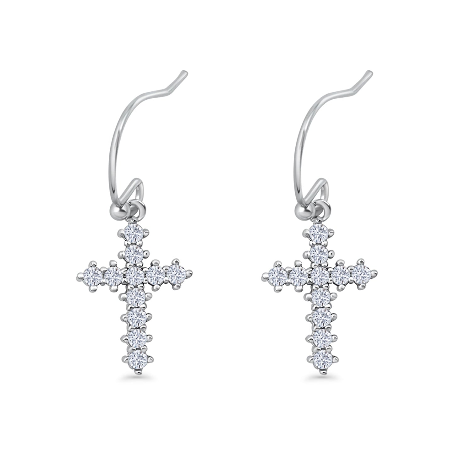Dangle Cross Fishhook Earrings Cubic Zirconia
