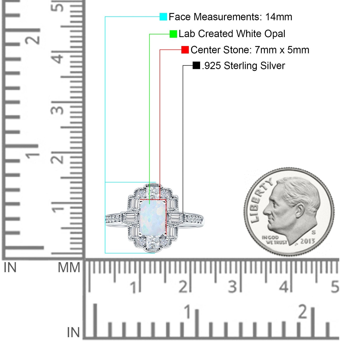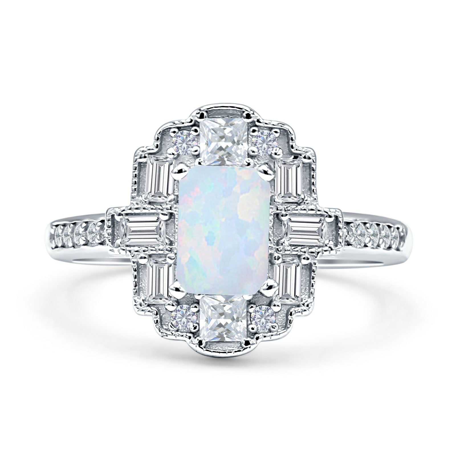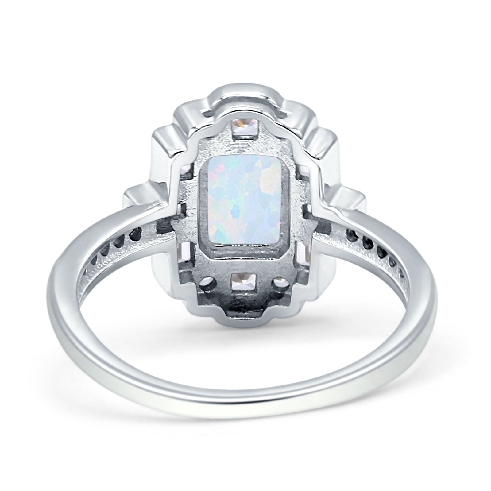 Emerald Cut Lab Created White Opal Floral Cocktail Ring