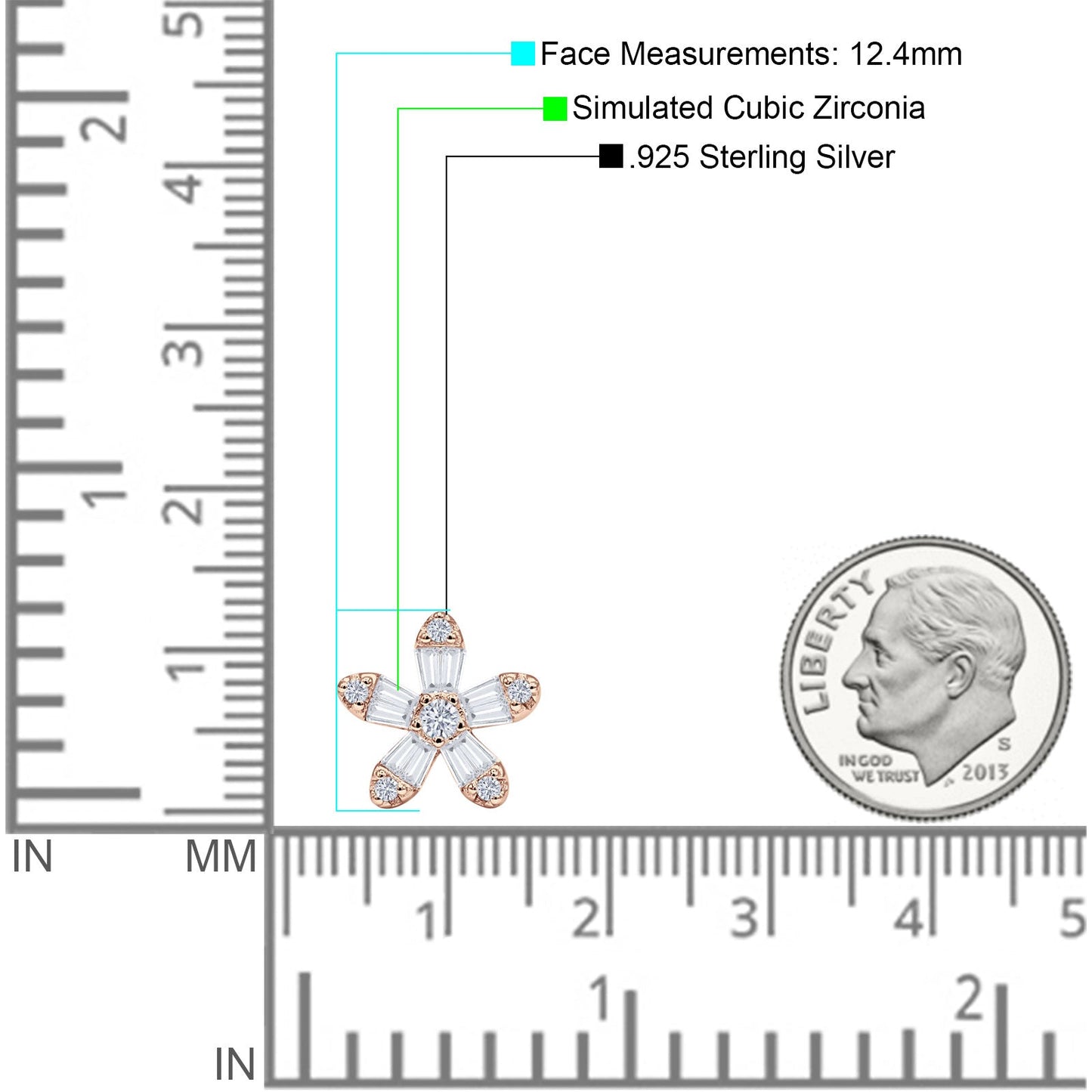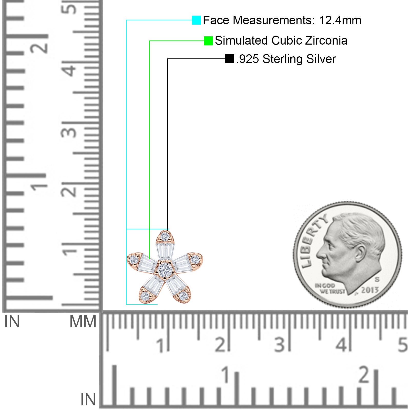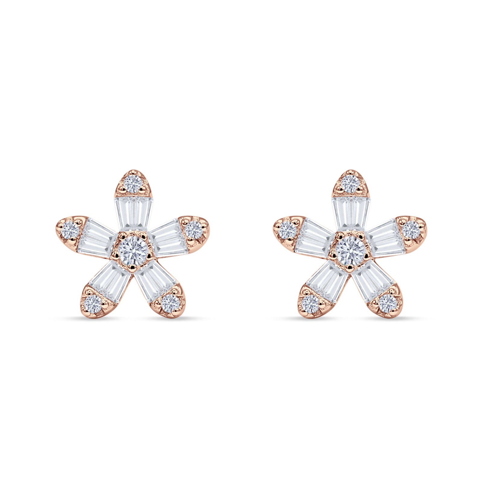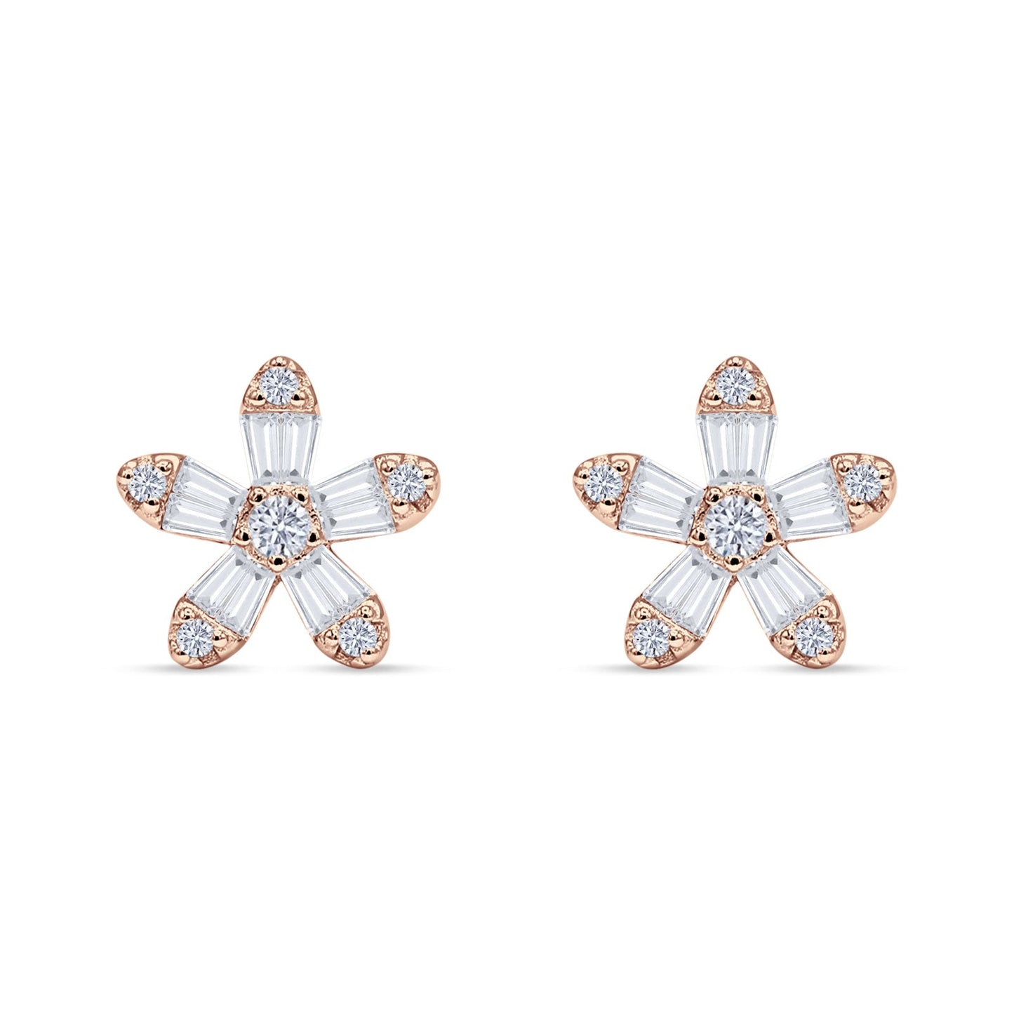 Floral Stud Earrings Cubic Zirconia Rose Tone