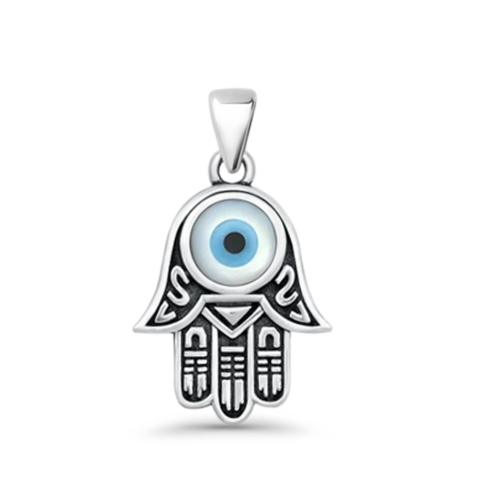 Hamsa Hand & Evil Eye Pendant Oxidized