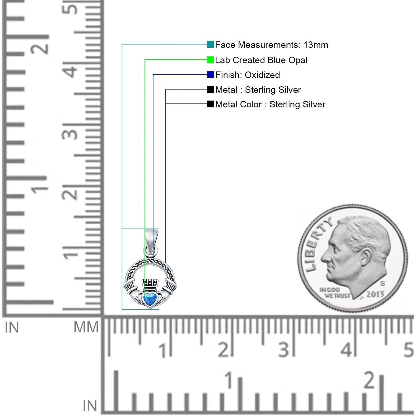 This elegant heart blue opal claddagh pendant is crafted from genuine 925 sterling silver with a vintage oxidized finish. Featuring a 13mm heart-shaped lab-created blue opal, it symbolizes love and friendship. A meaningful, affordable piece perfect for wholesale silver jewelry collections.