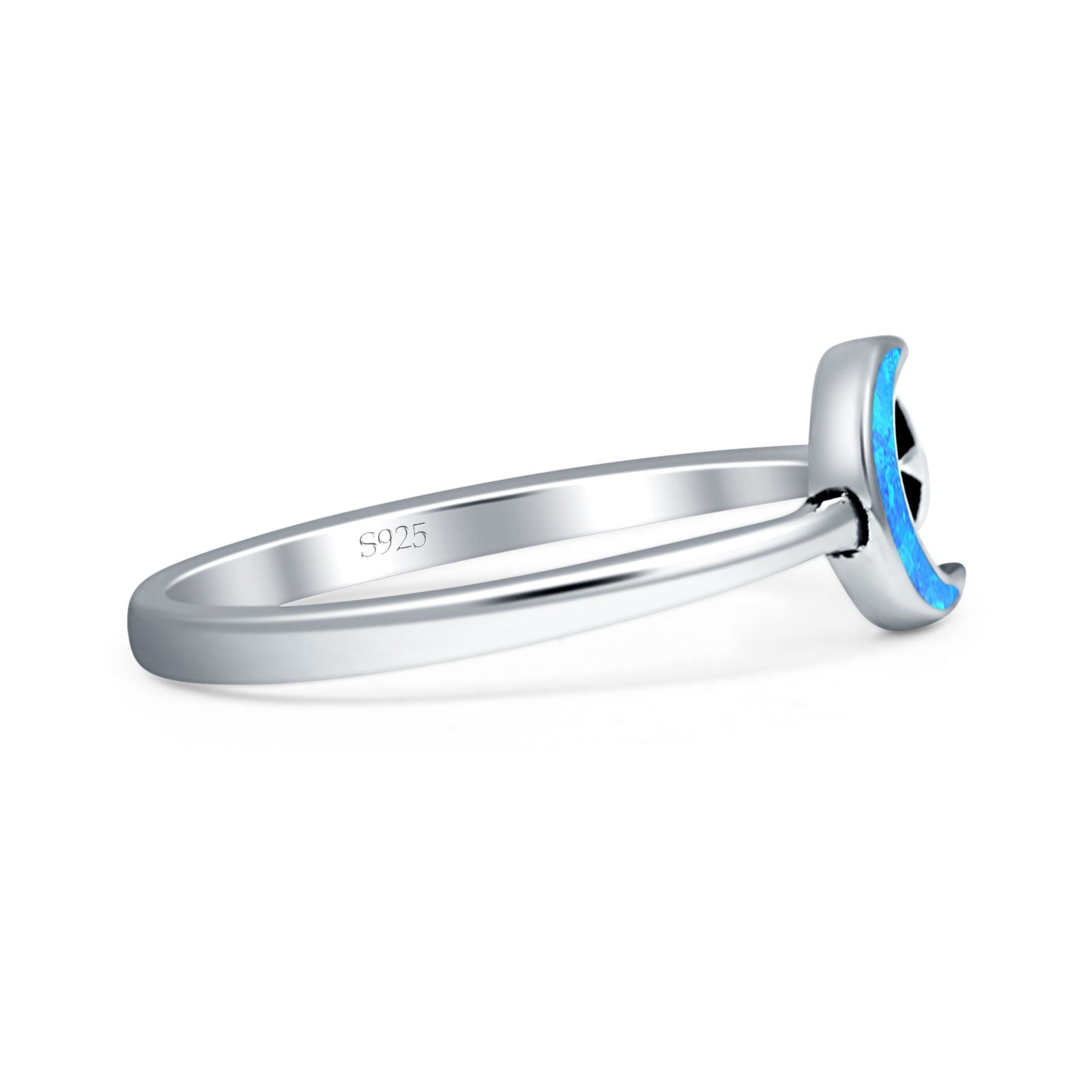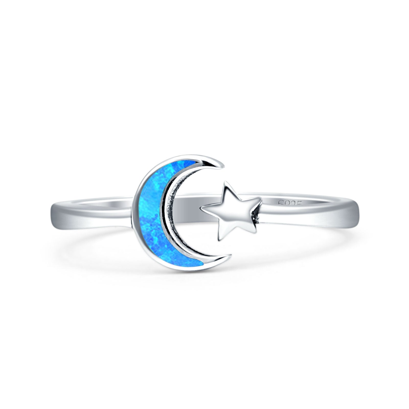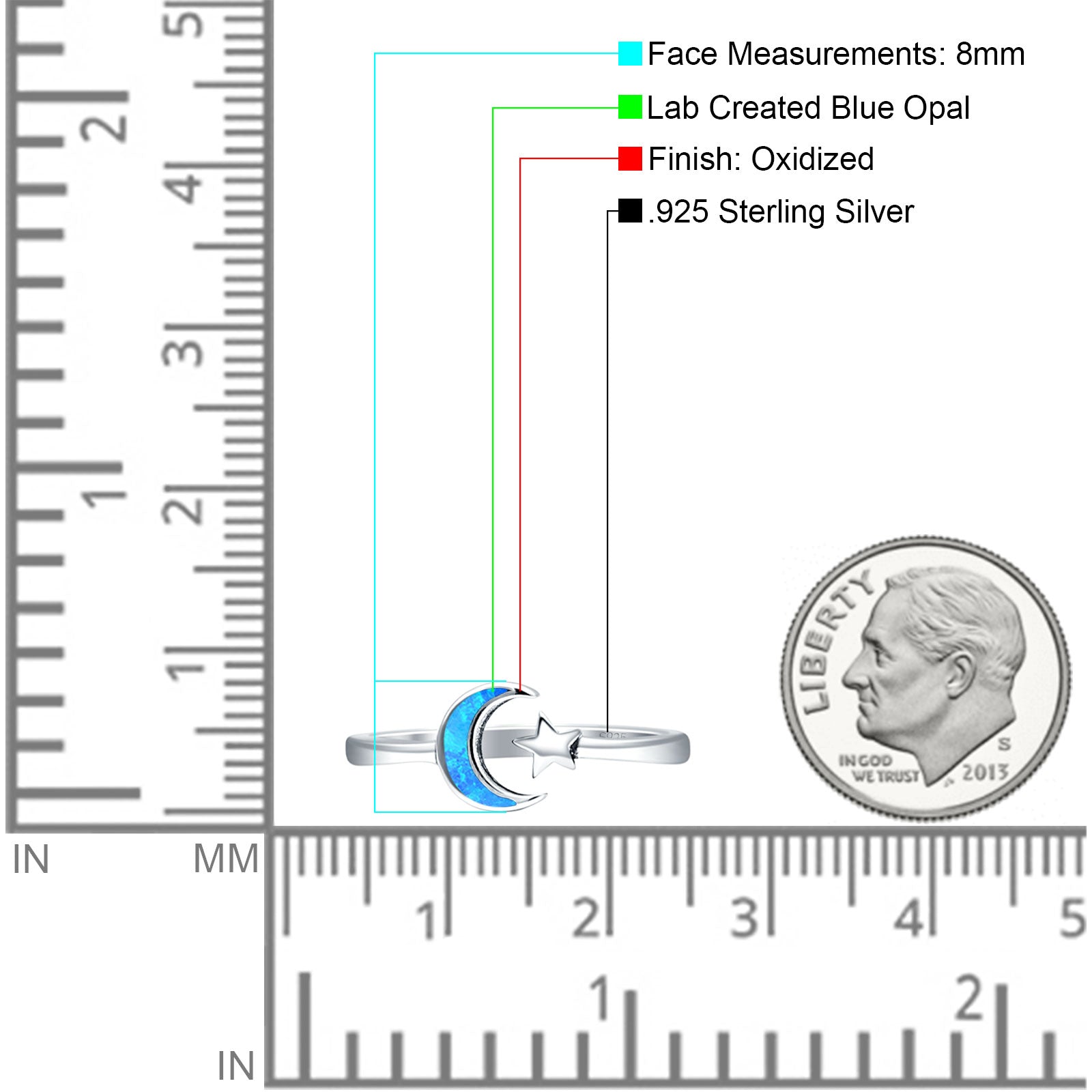 Lab Created Blue Opal Star & Moon Ring Oxidized