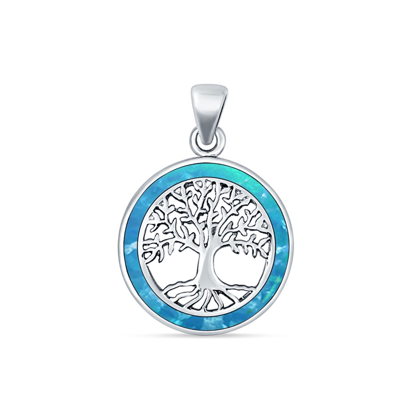 We present to you our tree of life pendant necklace. It has a brilliant lab-created blue opal set in a 20mm oxidized 925 sterling silver bezel, hanging from a fine 1mm bead chain. The design is a vintage look, highlighting the spiritual symbolism of the tree of life, along with stunning color - great for nature, wellness or boho-themed collections. This is a thoughtful and impact-ready piece, and an ideal addition to wholesale silver jewelry catalogs.