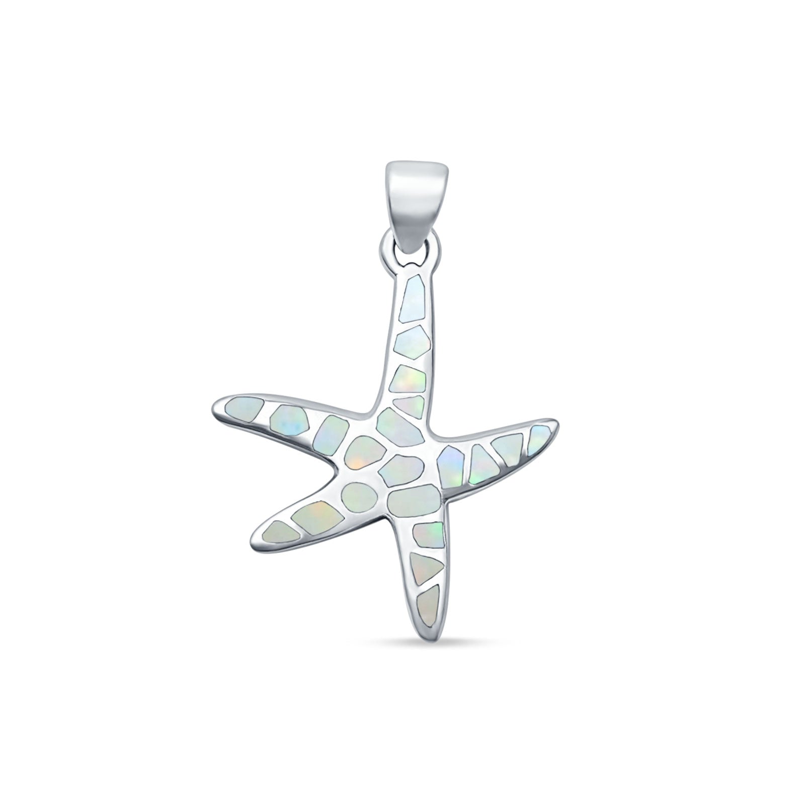 The lab produced white opal starfish pendant features river-inspired charm with its colorful shimmer and vintage shape. Made of 925 sterling silver, and with a 28mm pendant on a chain, make an impressive gift choice. Perfect for wholesale buyers looking for nature-inspired statement jewelry women want to wear.