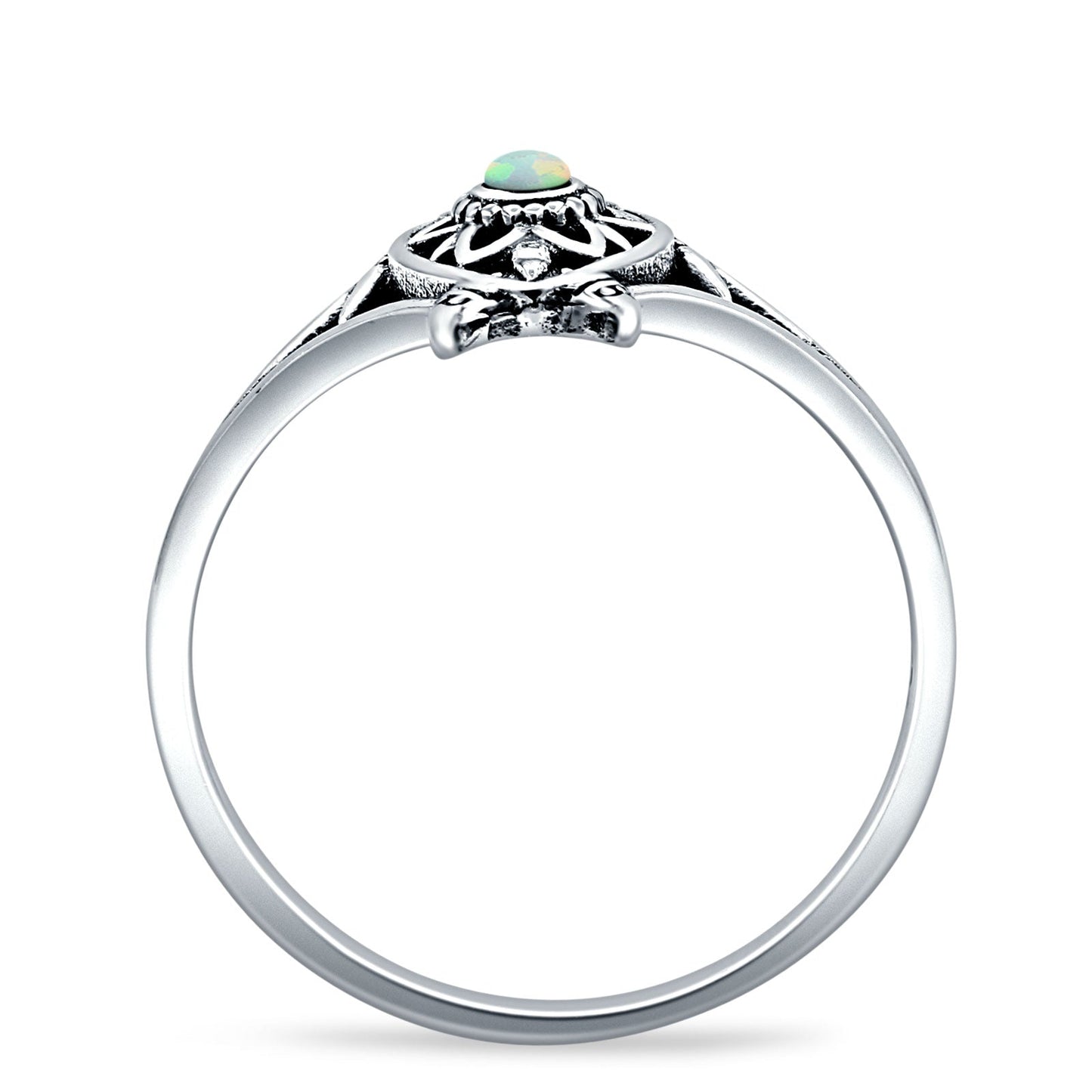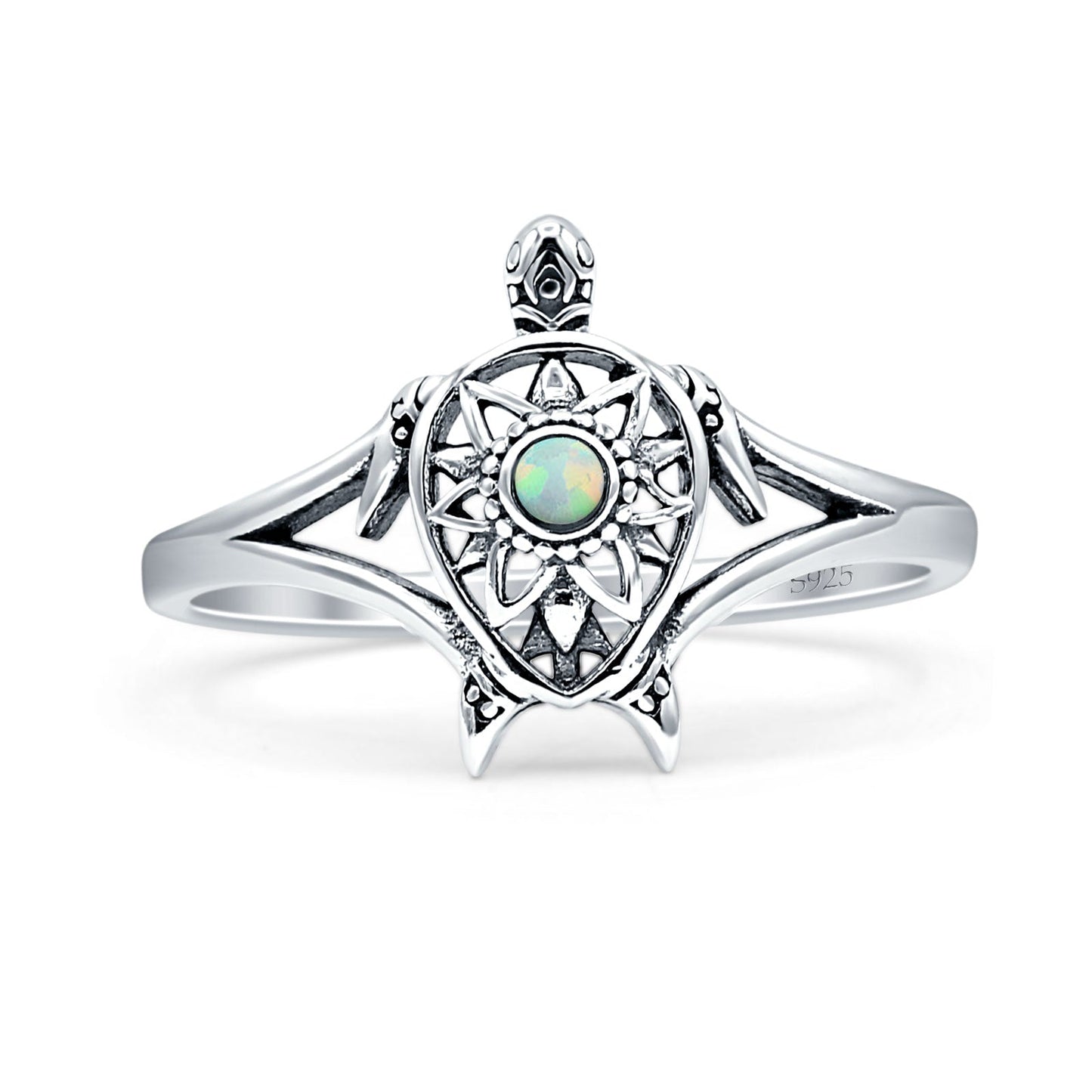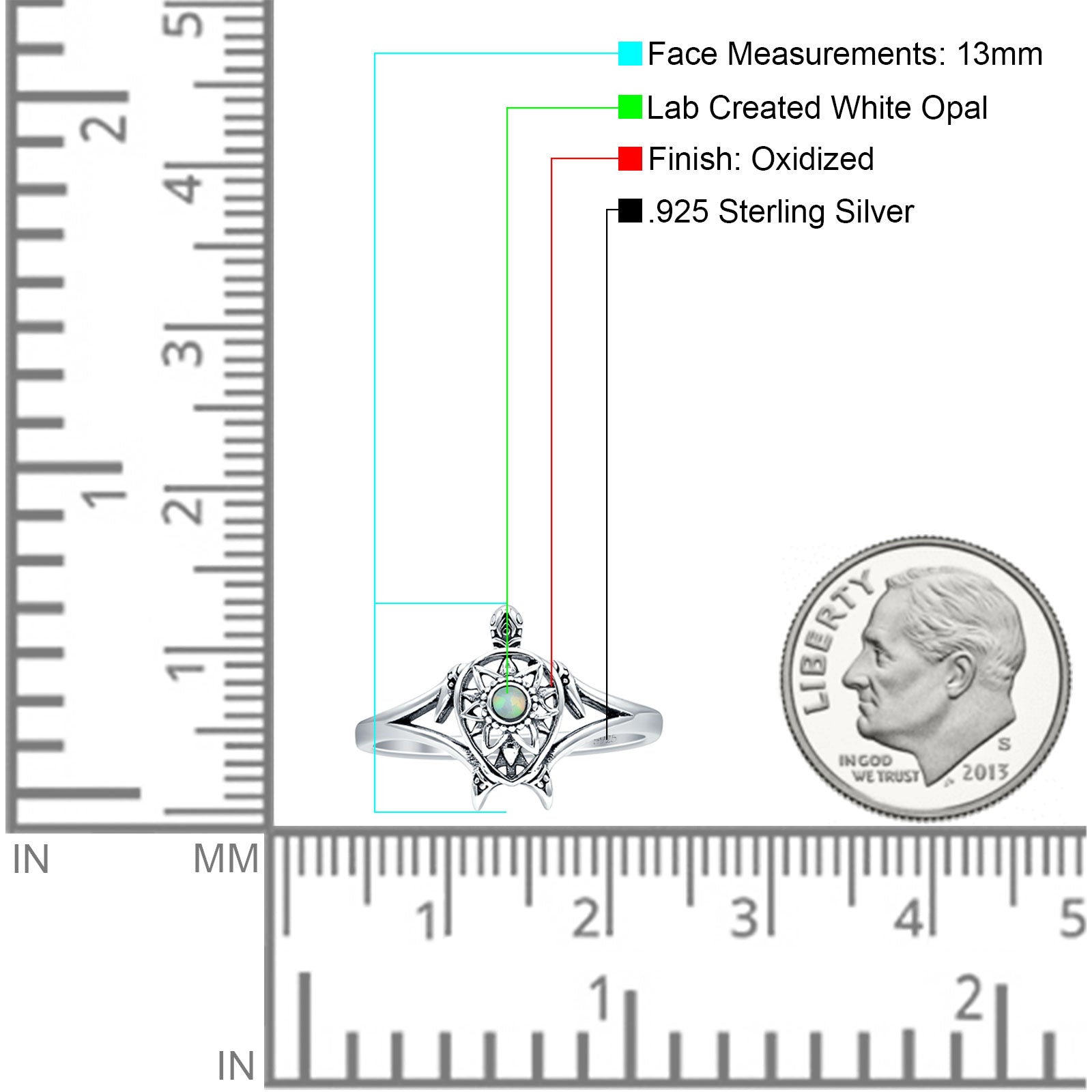 Lab Created White Opal Turtle Ring Oxidized 925 Sterling Silver Wholesale