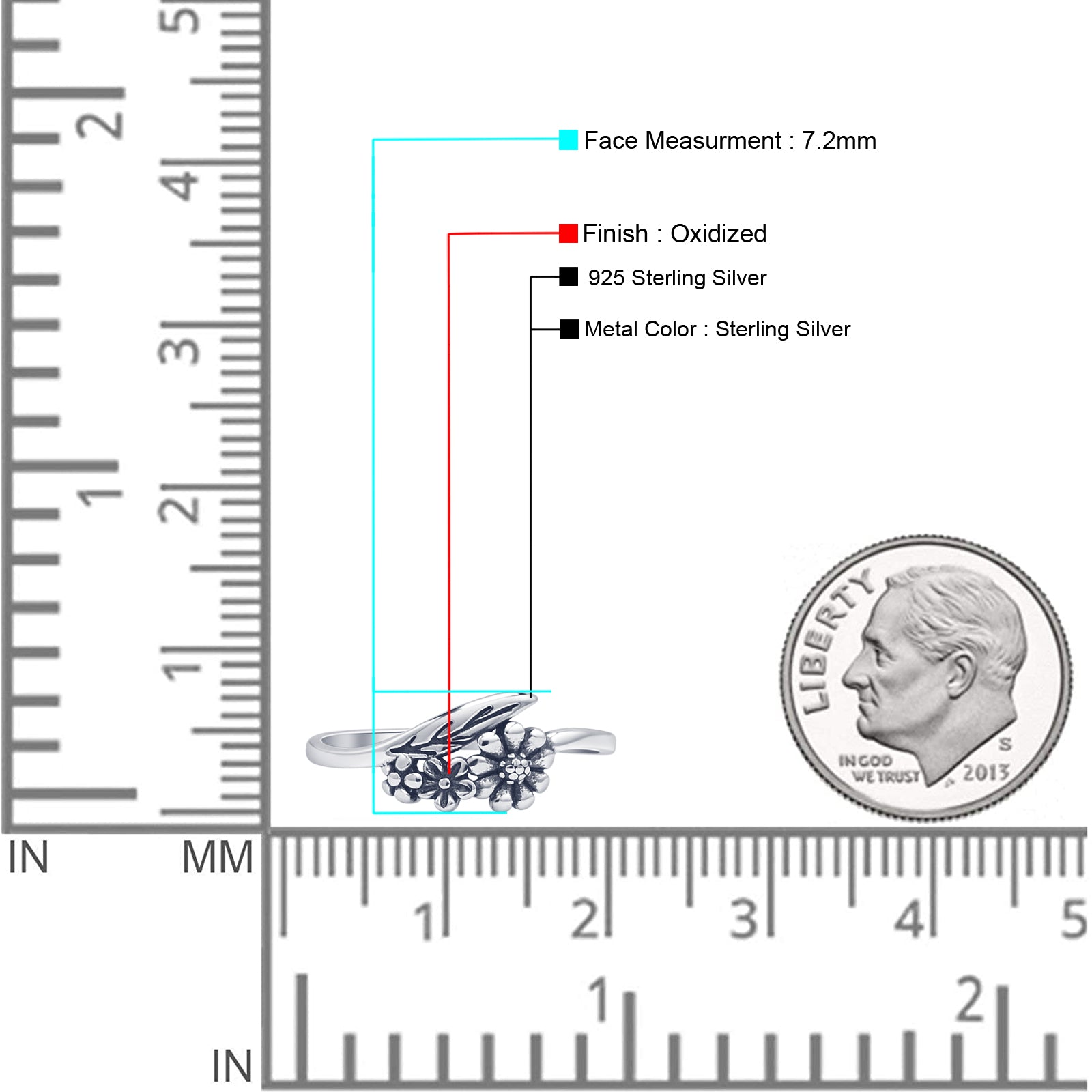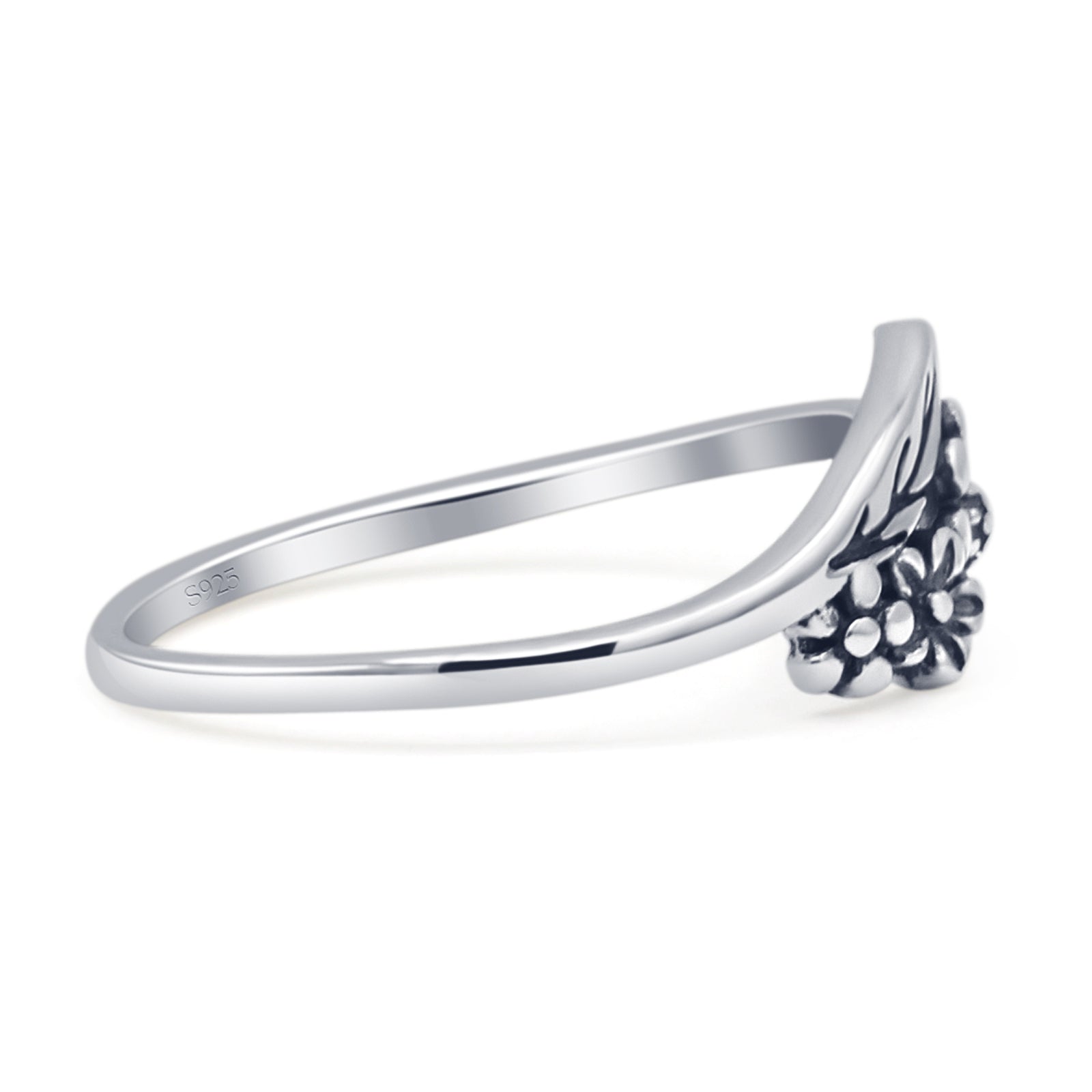 This minimalist 7.2mm flower leaf ring features a delicate floral and leaf design in an oxidized vintage finish, inspired by nature’s beauty. Crafted from 925 sterling silver, it’s a bold yet elegant fashion statement for everyday wear. Ideal for wholesale silver jewelry collections, perfect for nature lovers and vintage-style enthusiasts. A great birthday or seasonal gift item.