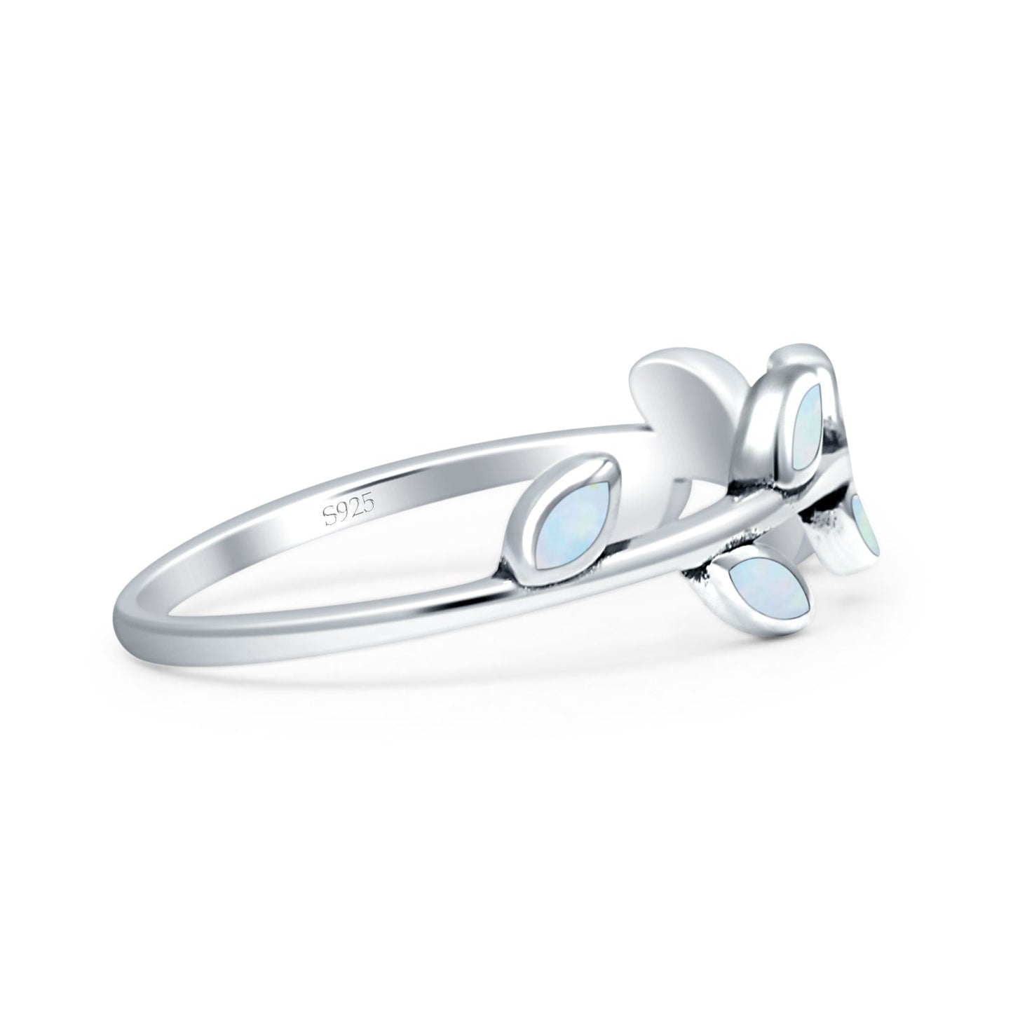 Leaves Band Lab Created White Opal Oxidized Ring