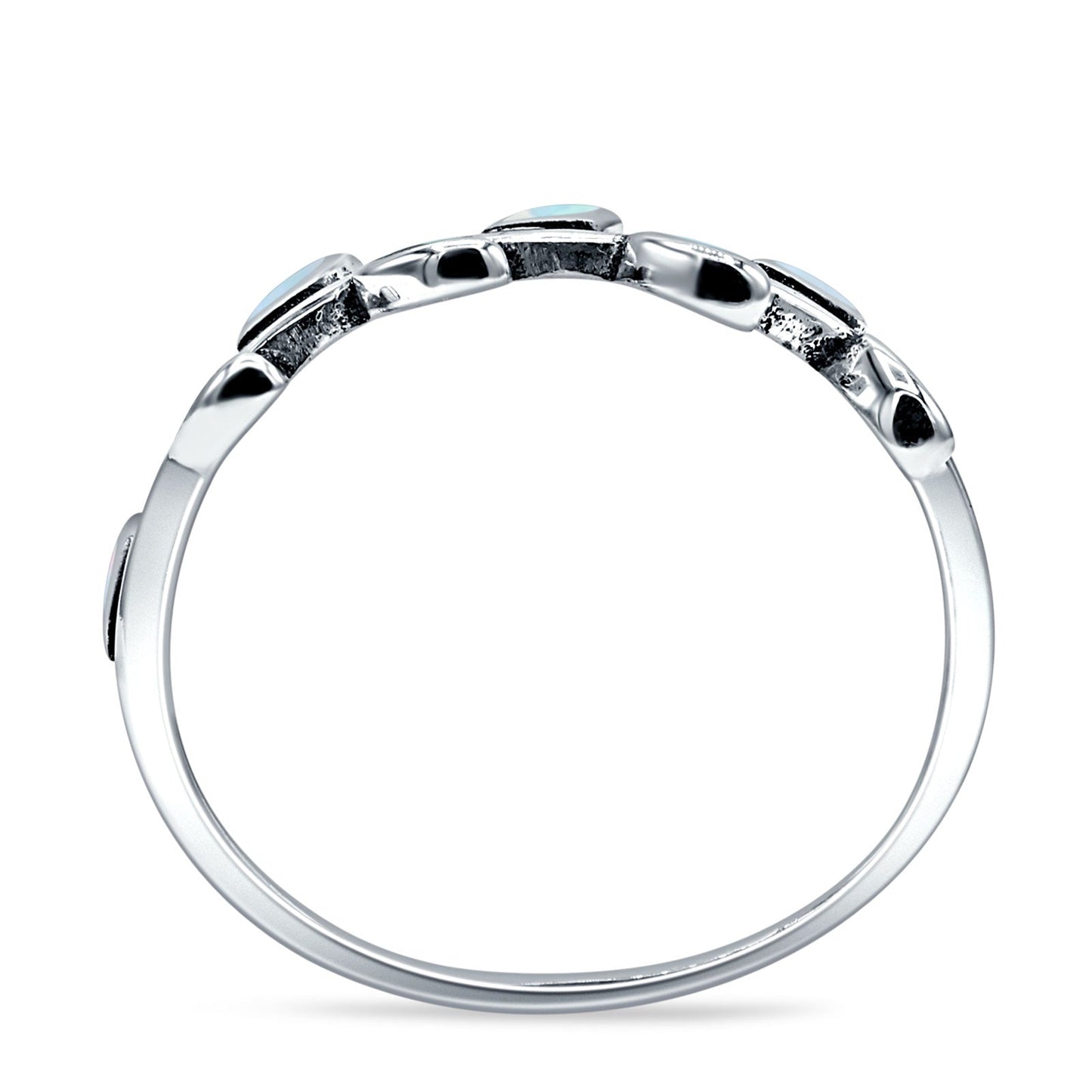 Lab Created White Opal Leaves Band Oxidized Ring.