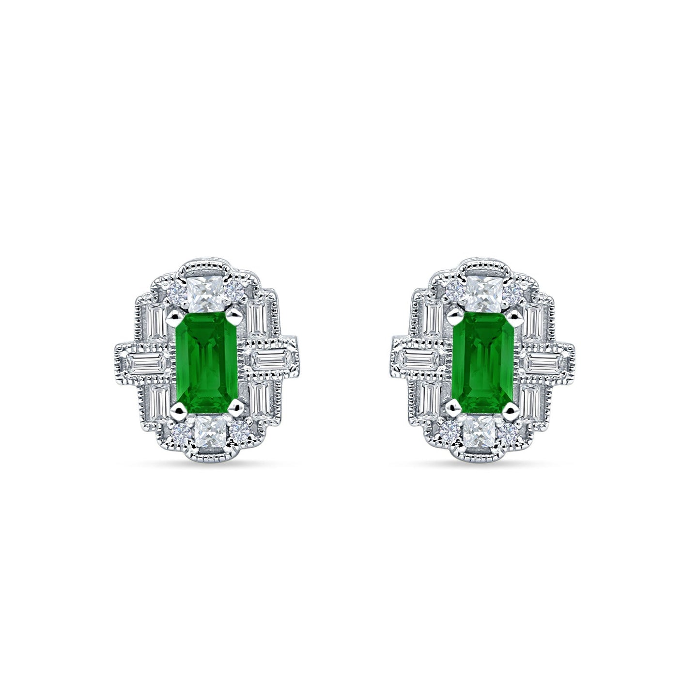 Multistone Stud Earrings Green Emerald CZ