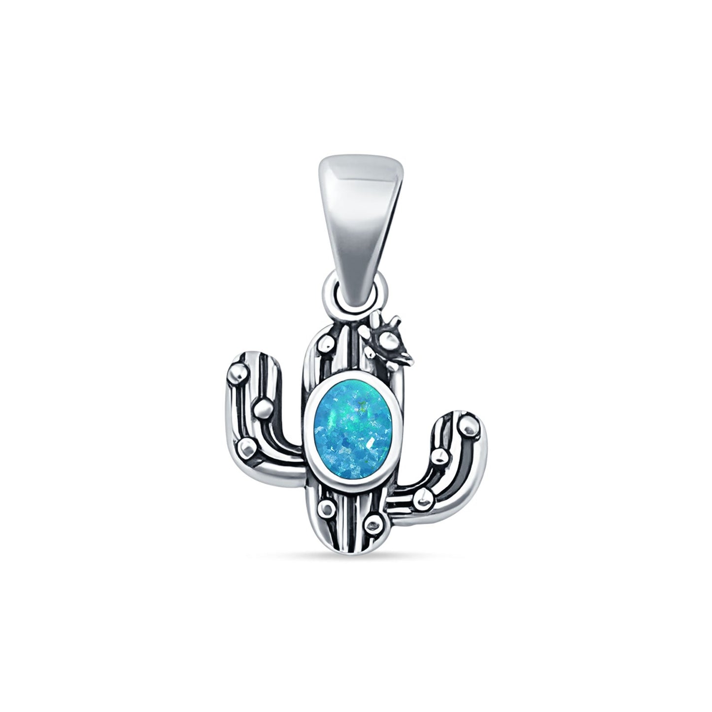 This cactus pendant necklace is made with 925 sterling silver and has a shiny blue opal in the center. The small 10mm pendant shows a cactus design and comes with a 1mm bead chain. It has a vintage look and is easy to wear every day. A great piece for wholesale buyers looking for pretty and unique silver jewelry.