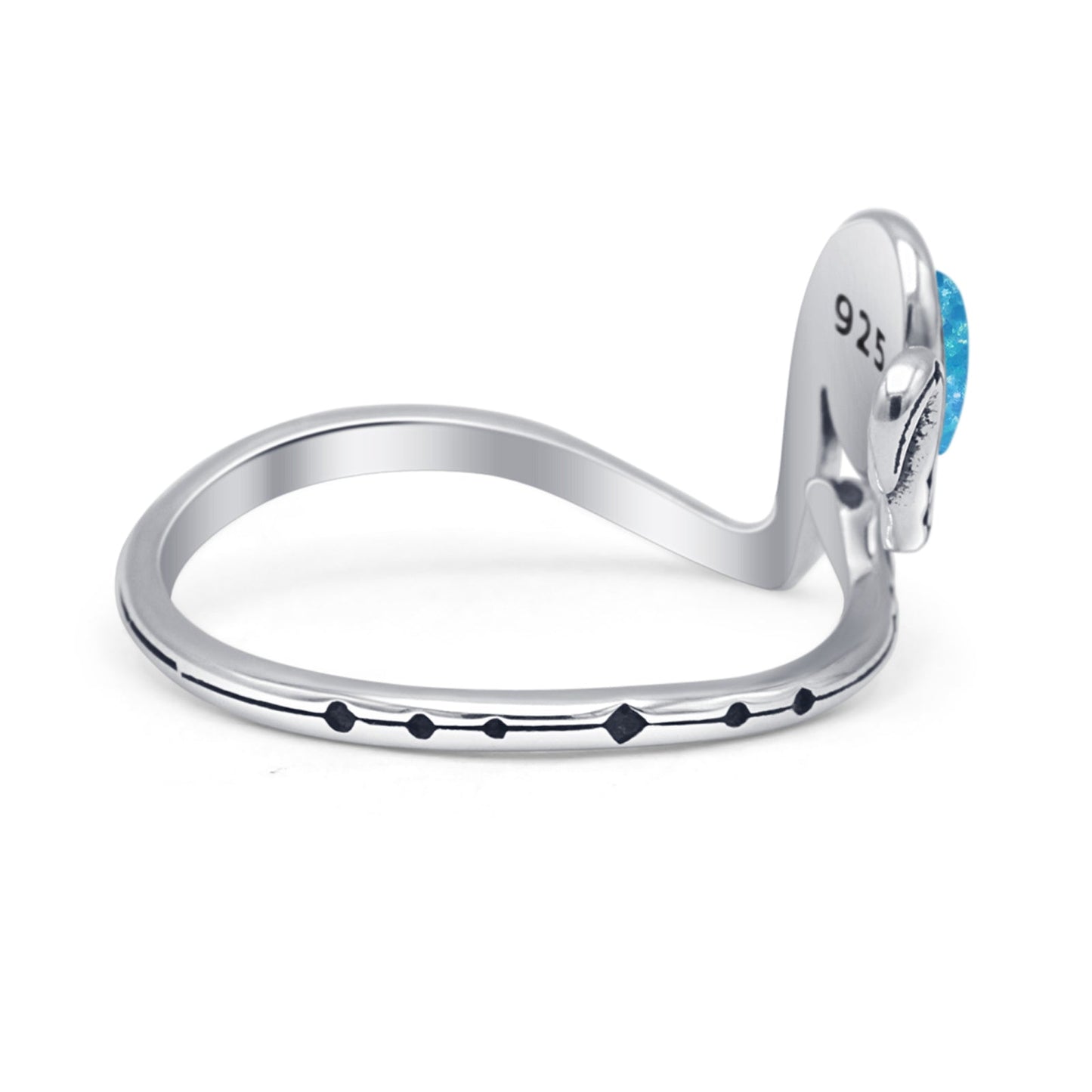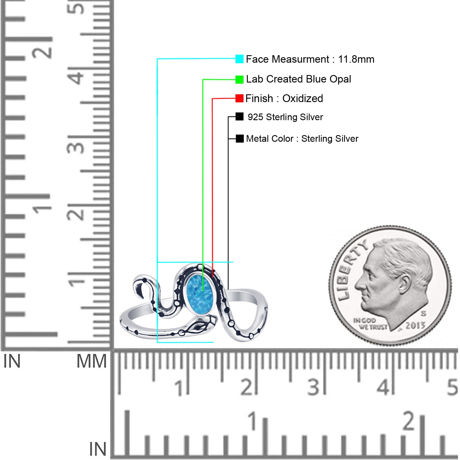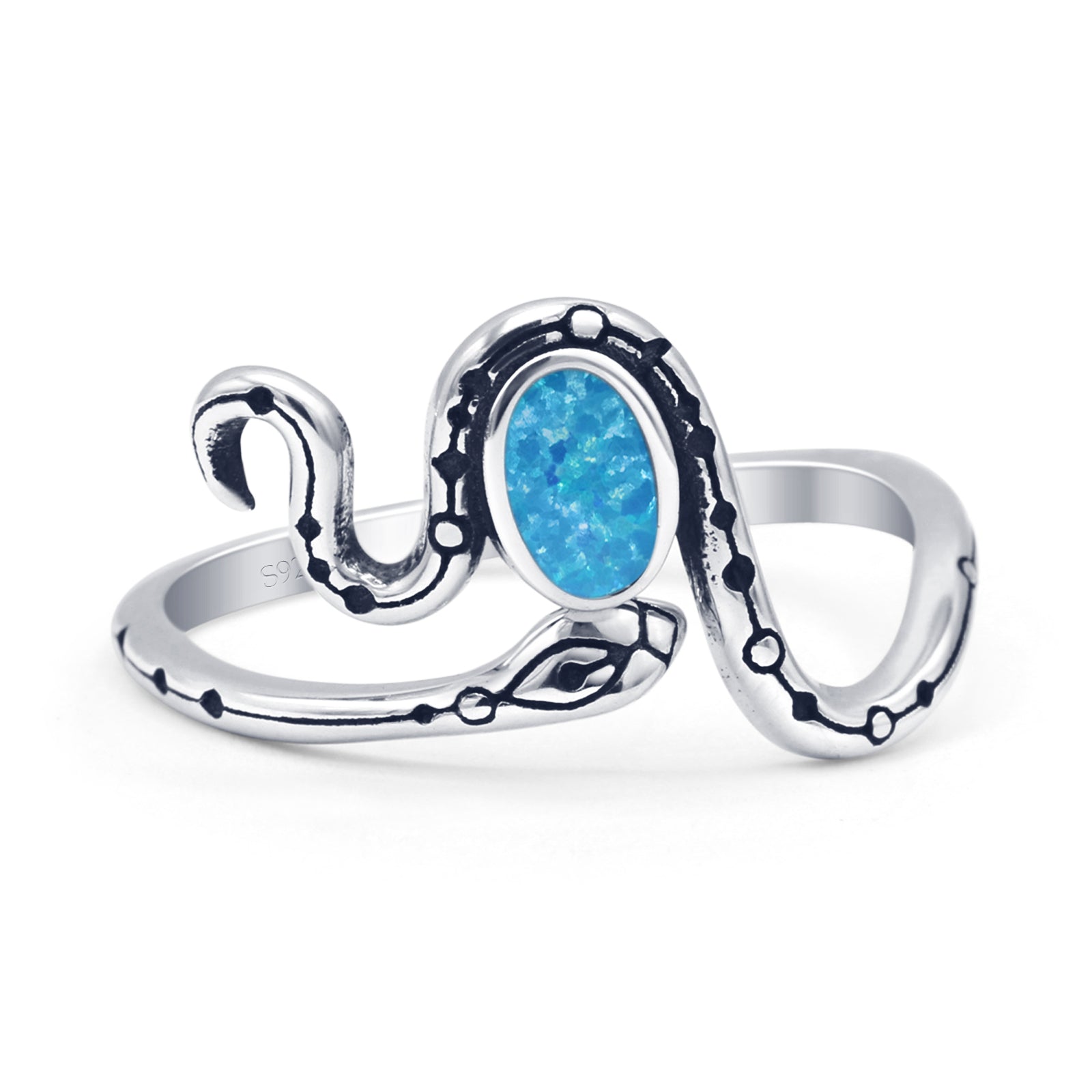 Oval Lab Created Blue Opal Snake Ring Oxidized