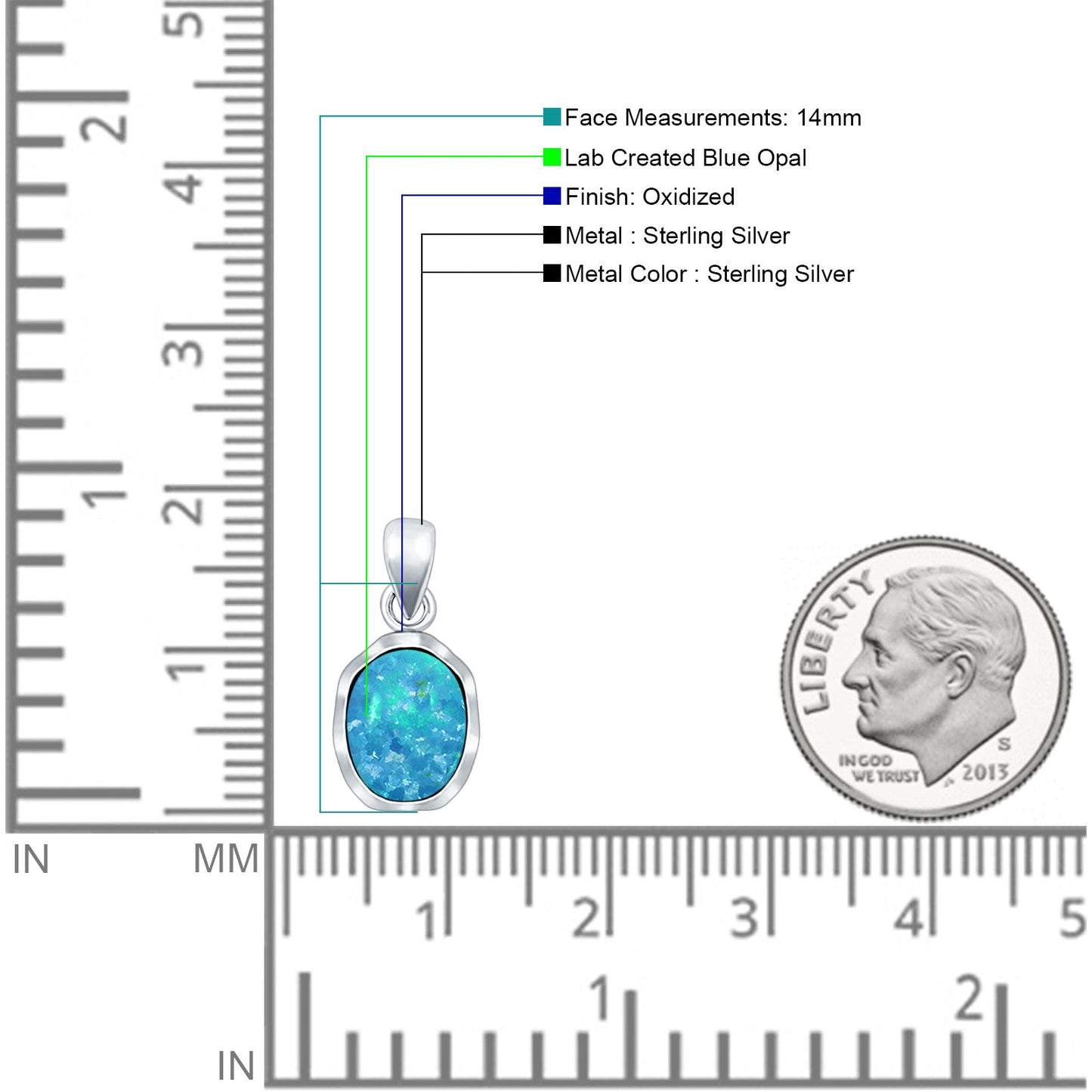 Check out this cool Oval Lab Created Blue Opal Pendant Necklace. It's got a shiny 14mm blue opal set in a vintage-looking, oxidized 925 sterling silver thing. It's great for ladies who dig classic sparkle but want something kinda fresh. Would be great if you were looking to buy in bulk as a gift. Or its just good for everyday.