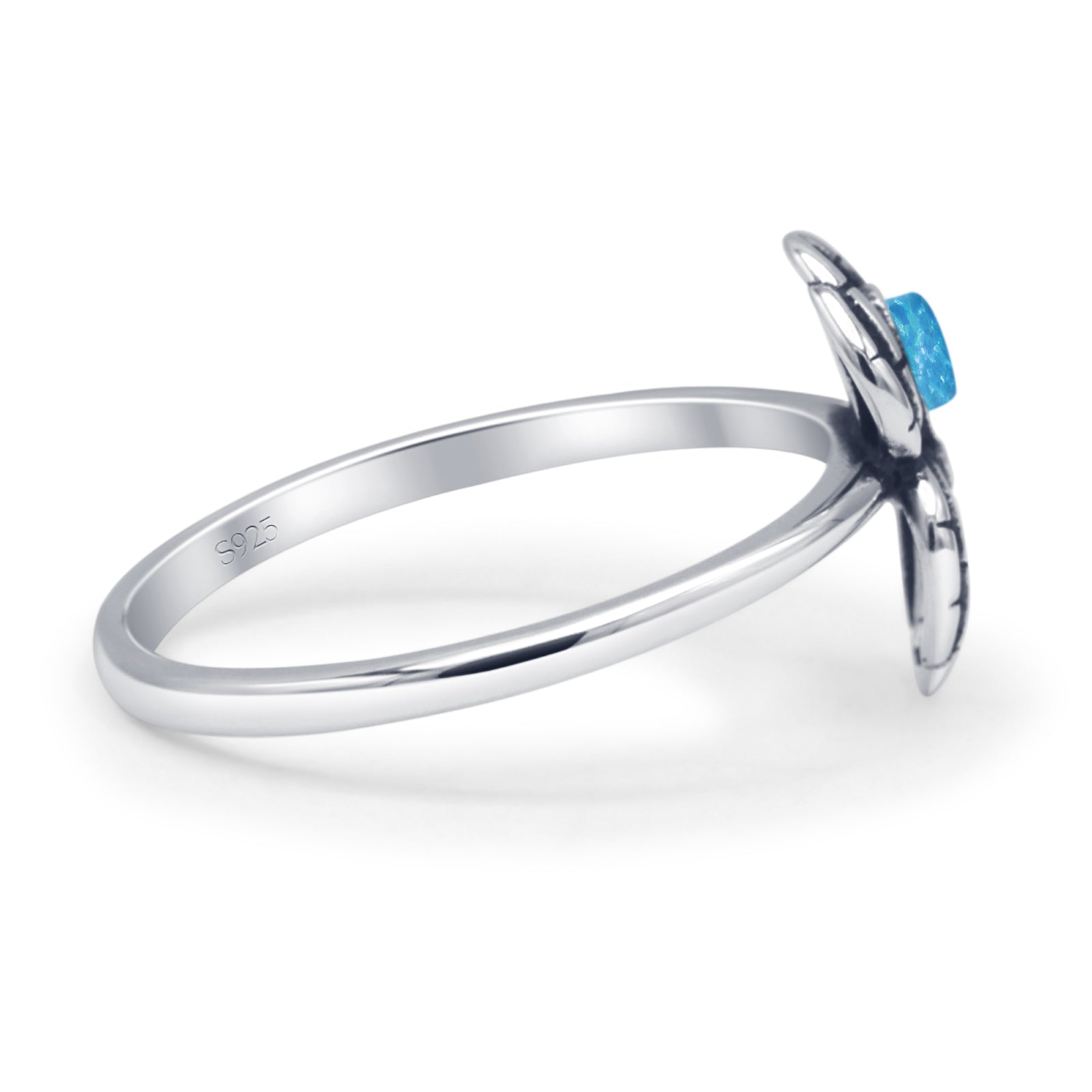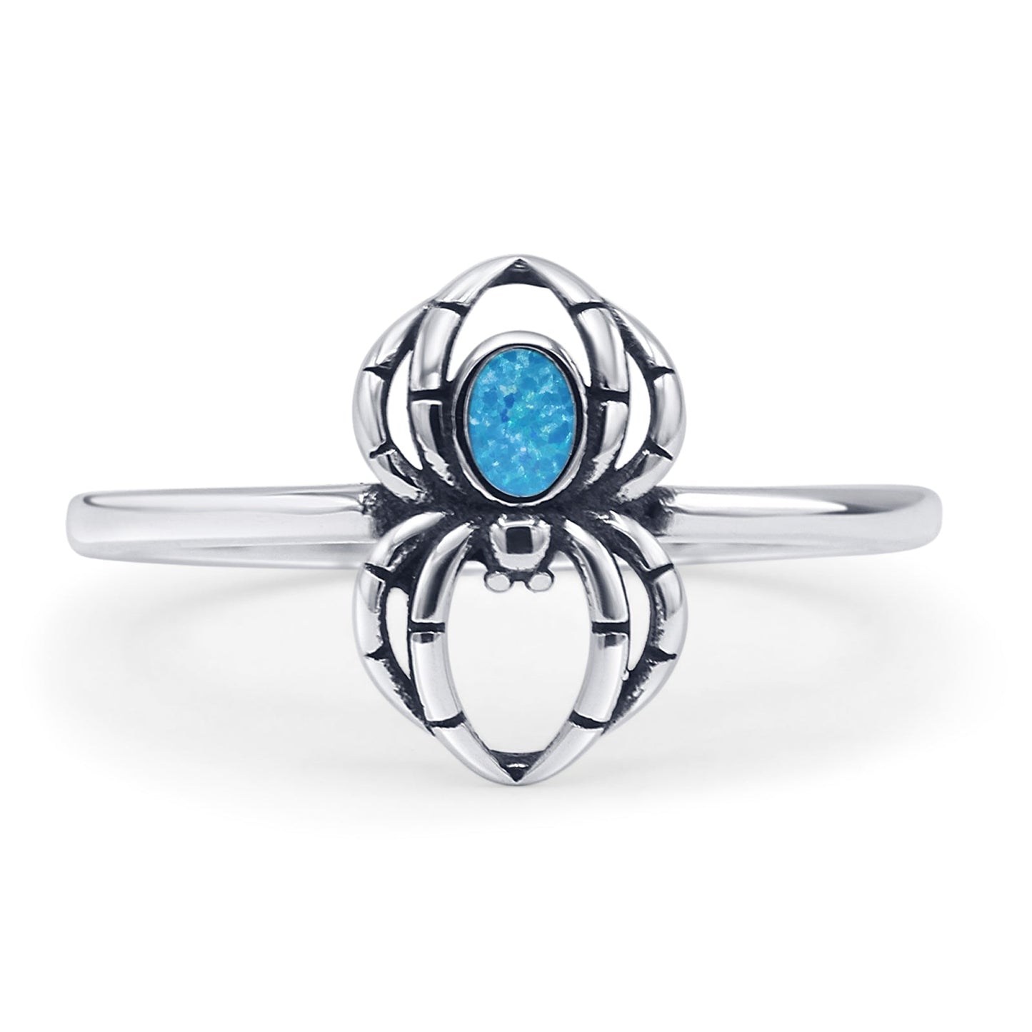 Oval Lab Created Blue Opal Spider Ring Oxidized