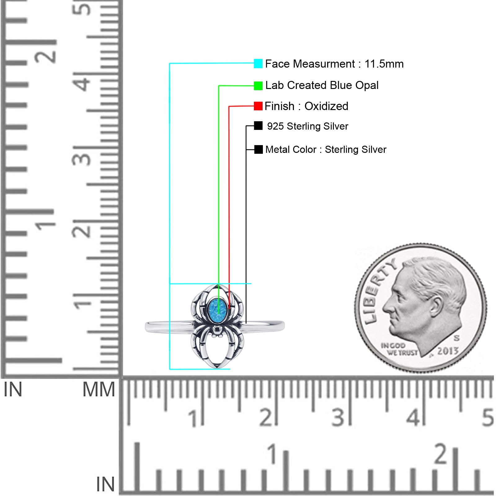 ☉Ring Design: Oval Lab Created Blue Opal Oxidized Spider Ring.