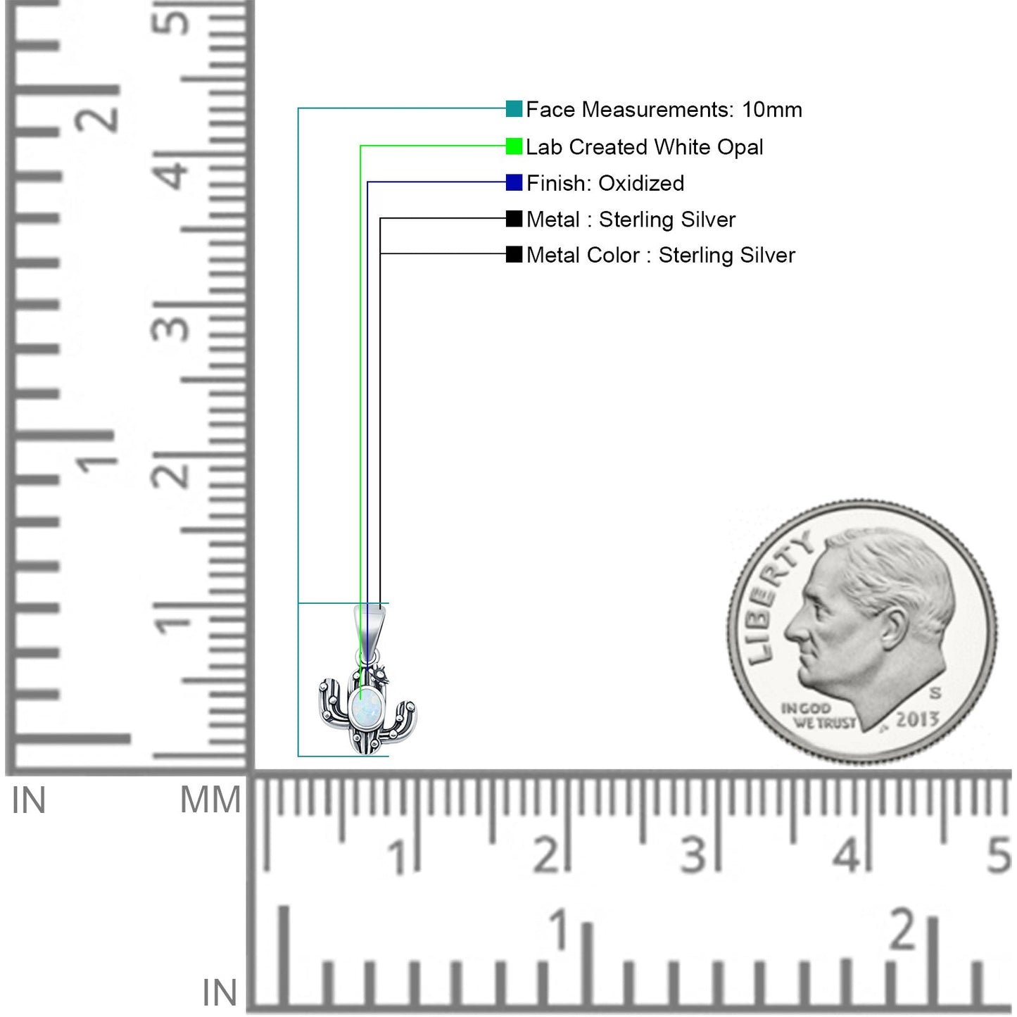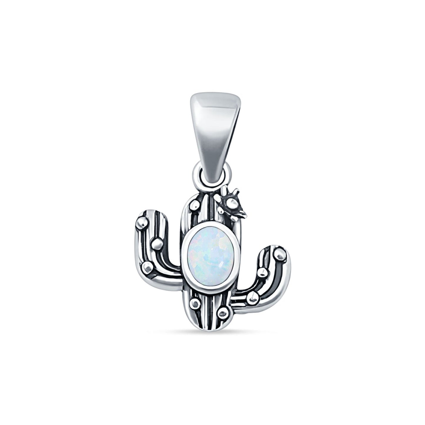Oval Lab Created White Opal Cactus Pendant