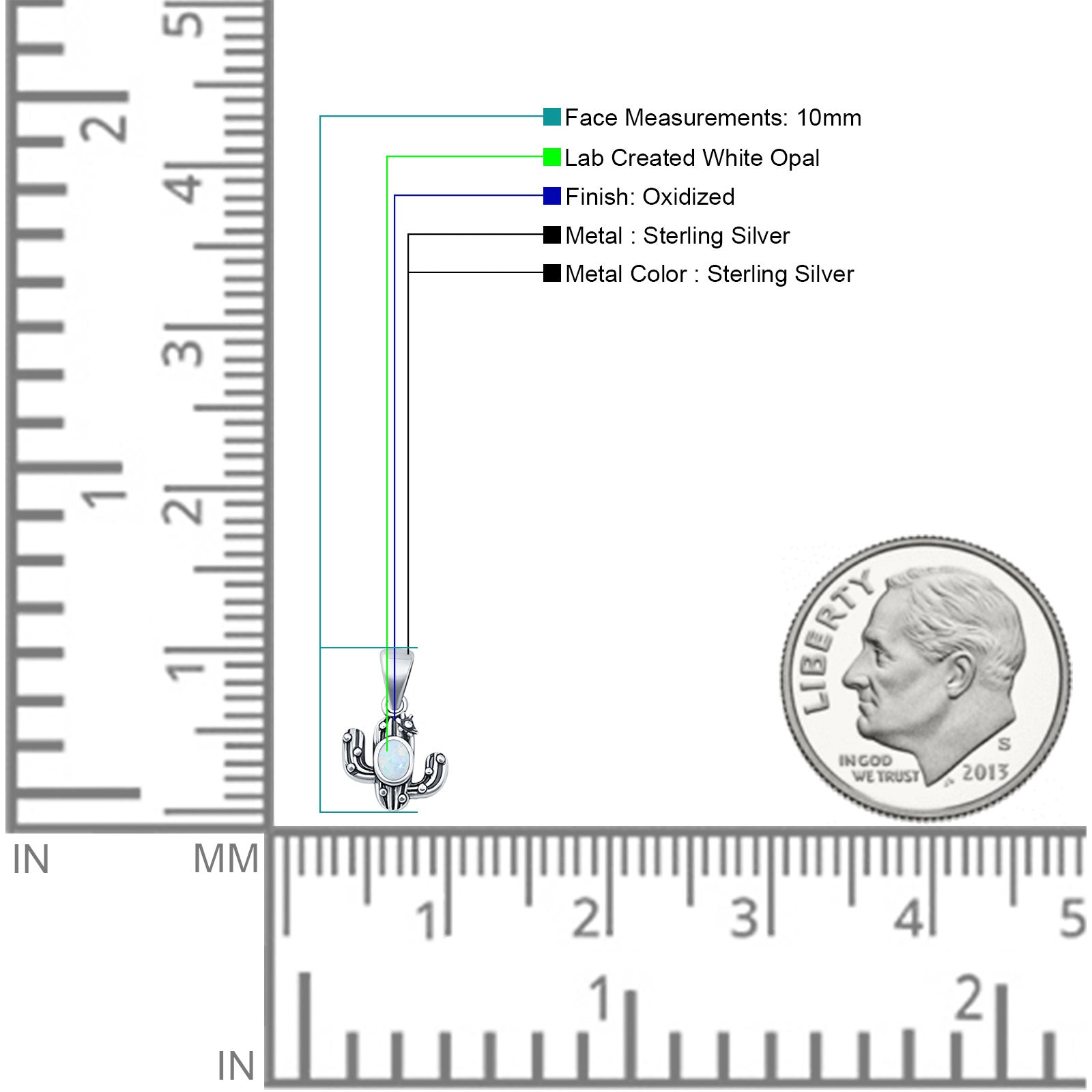 This cactus pendant necklace is made with 925 sterling silver and has a shiny White Opal in the center. The small 10mm pendant shows a cactus design and comes with a 1mm bead chain. It has a vintage look and is easy to wear every day. A great piece for wholesale buyers looking for pretty and unique silver jewelry.