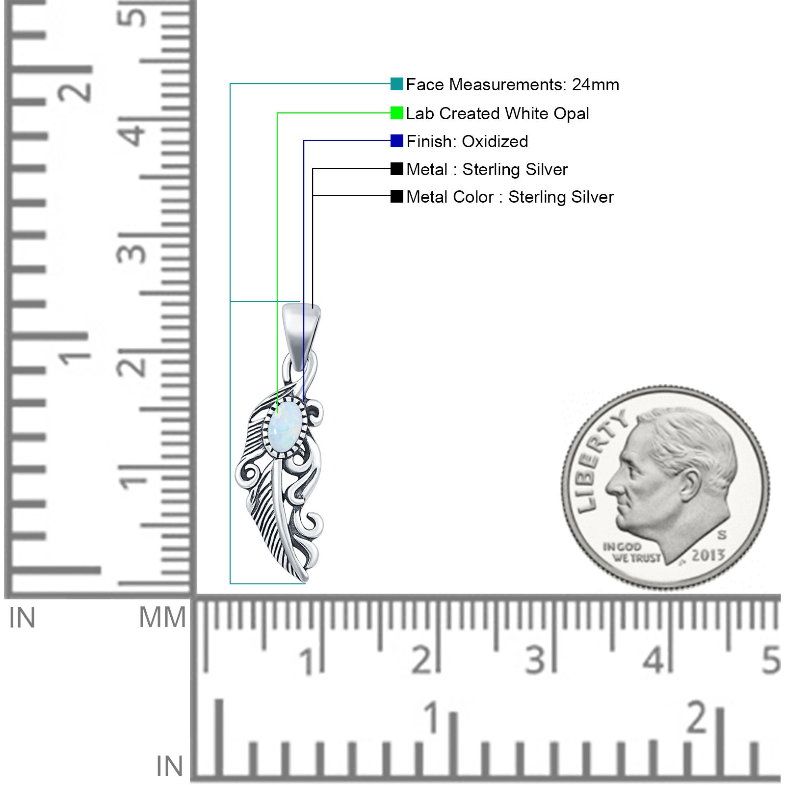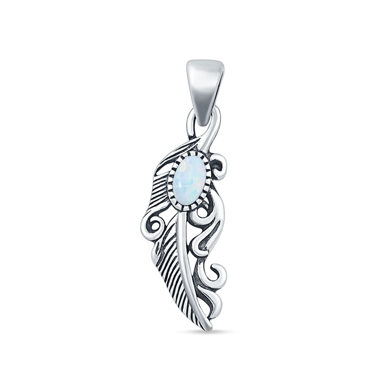 Oval Lab Created White Opal Feather Filigree Pendant