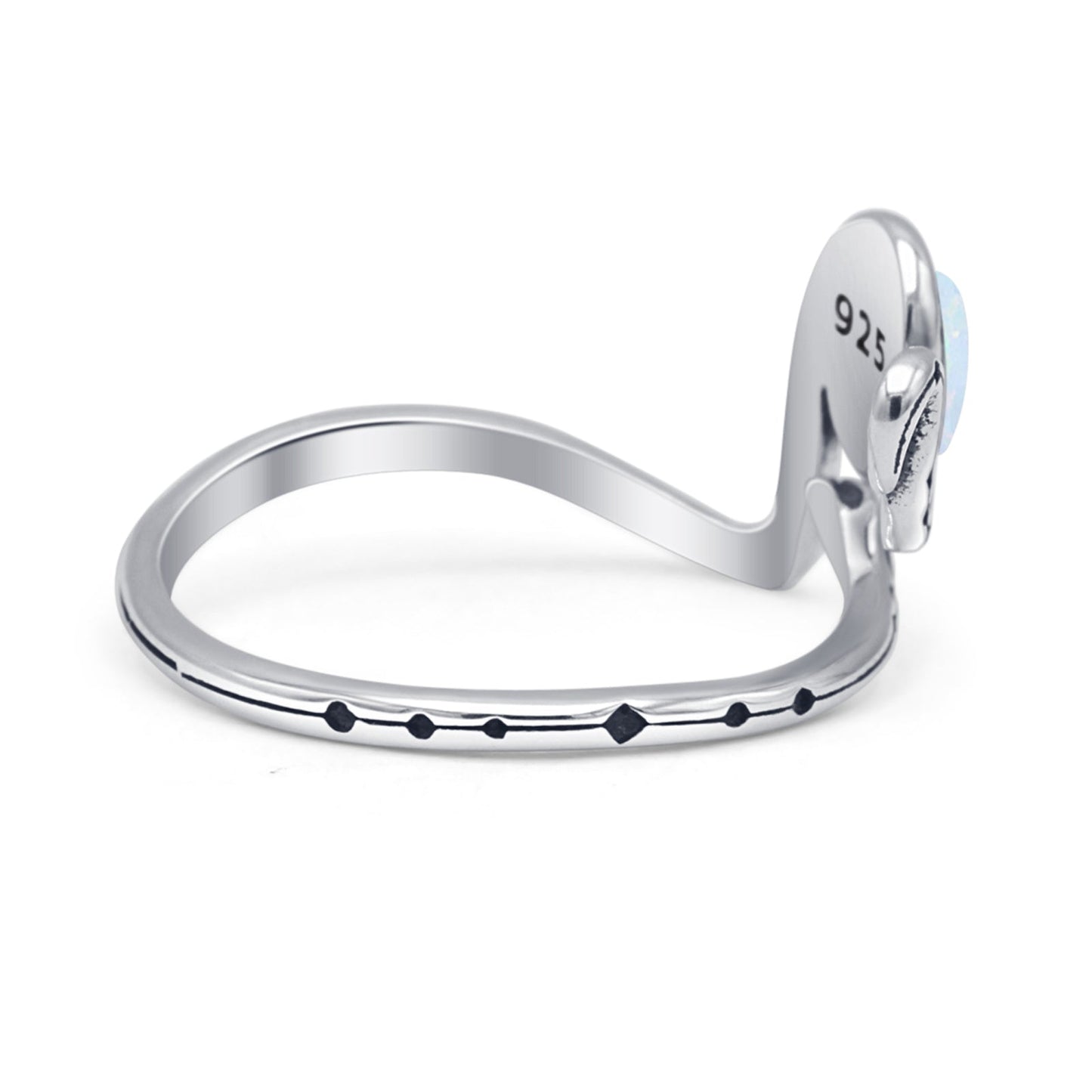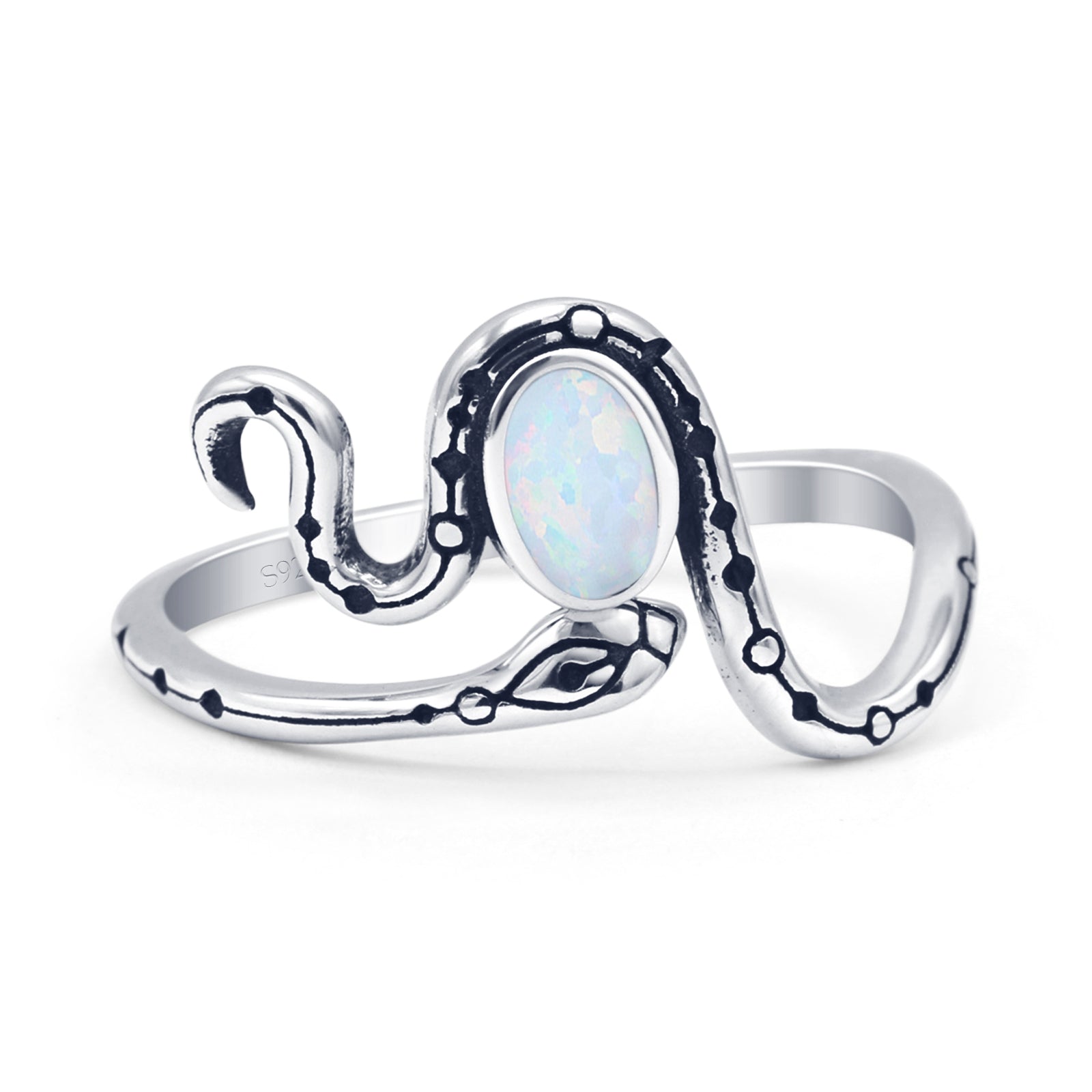 Oval Lab Created White Opal Snake Ring Oxidized