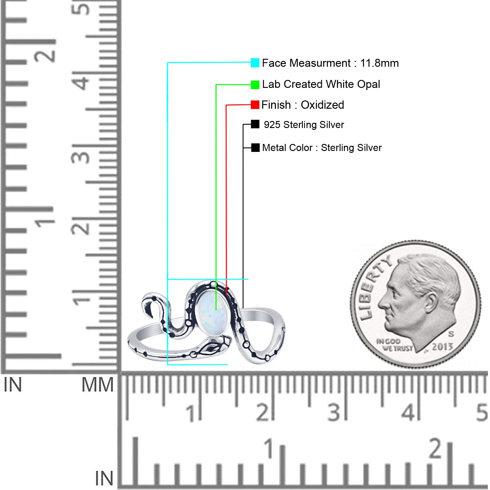 Oval Lab Created White Opal Snake Ring.