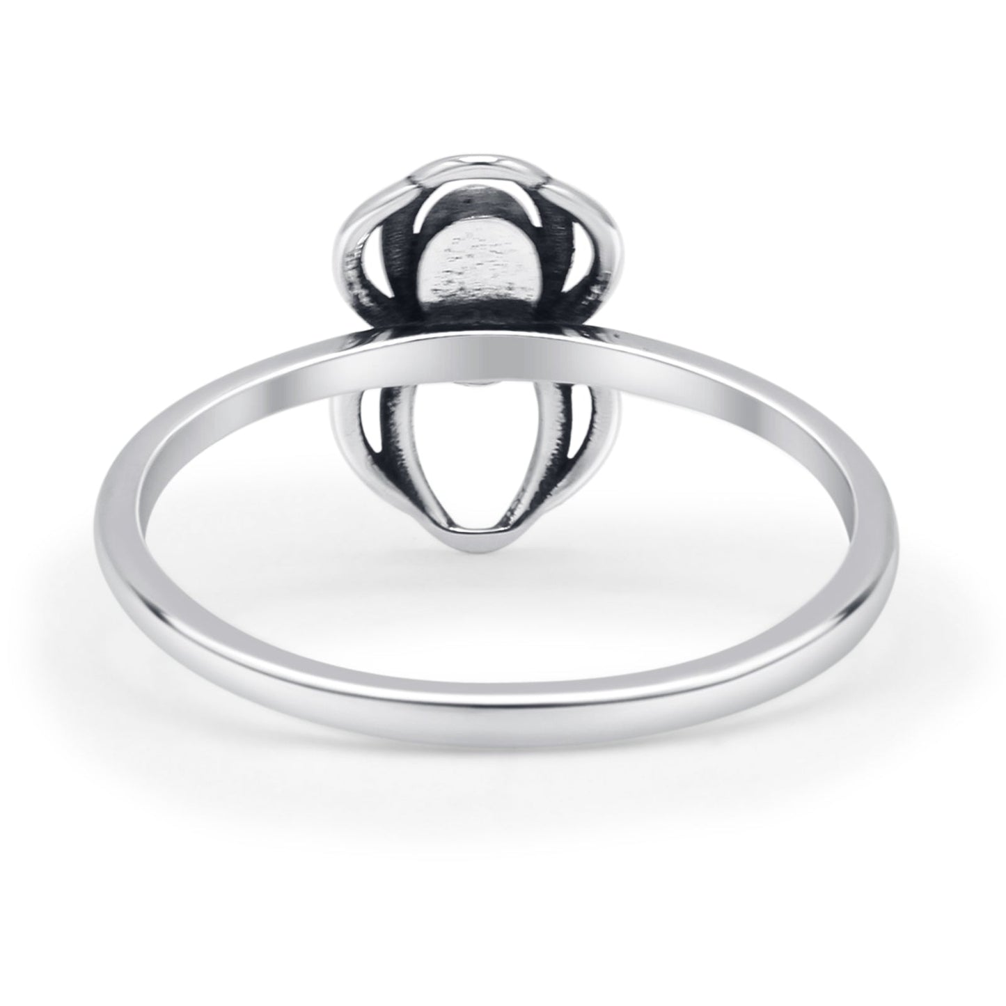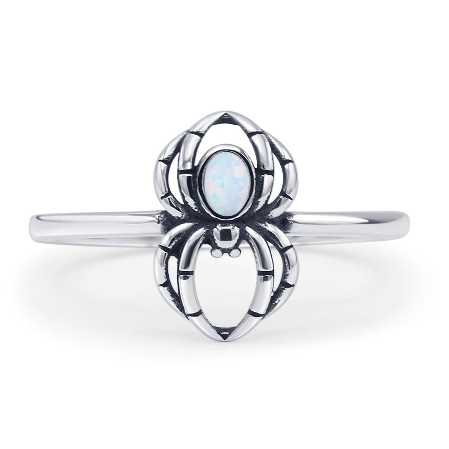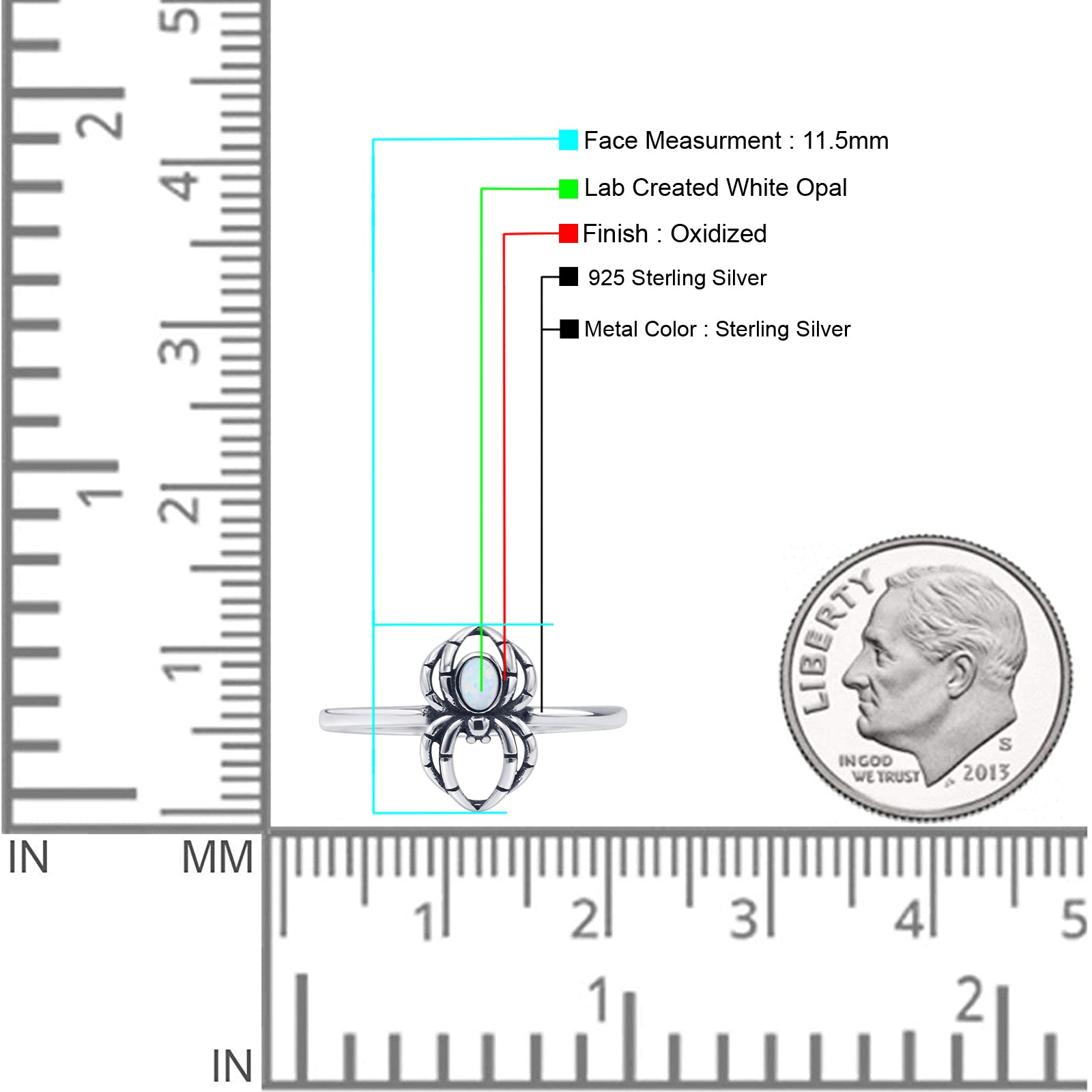 ☉Ring Design: Oval Lab Created White Opal Oxidized Spider Ring.