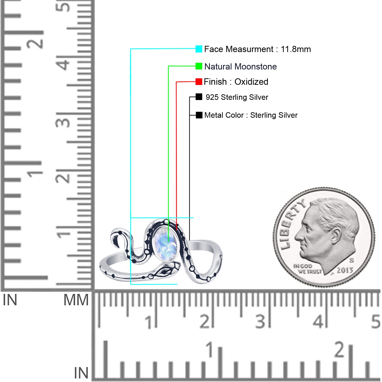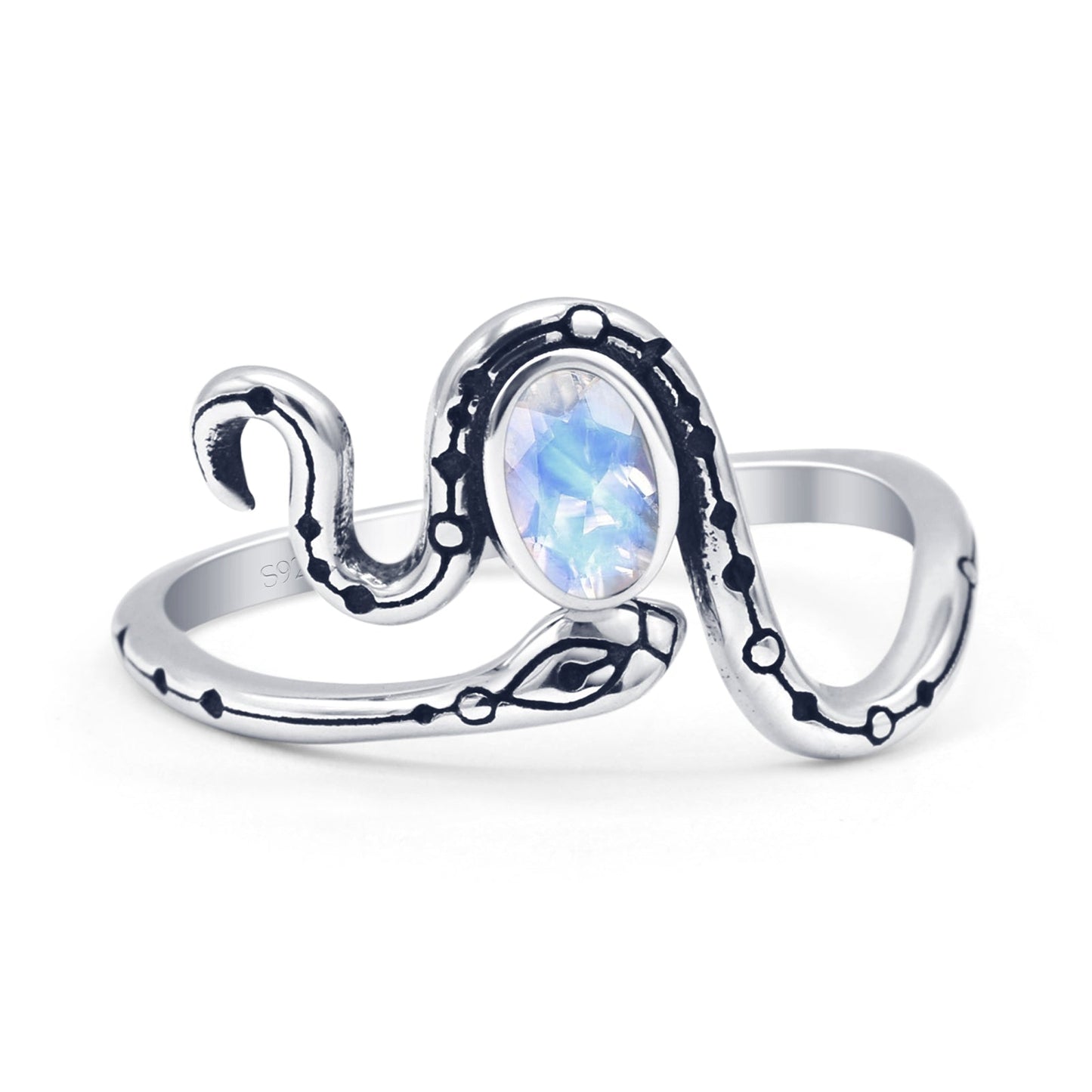 ☉Ring Design: Oxidized Oval Moonstone Snake Ring.