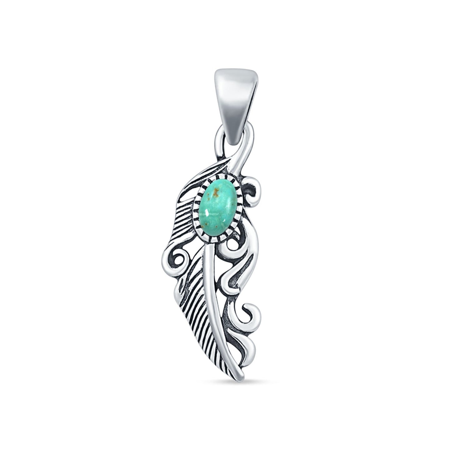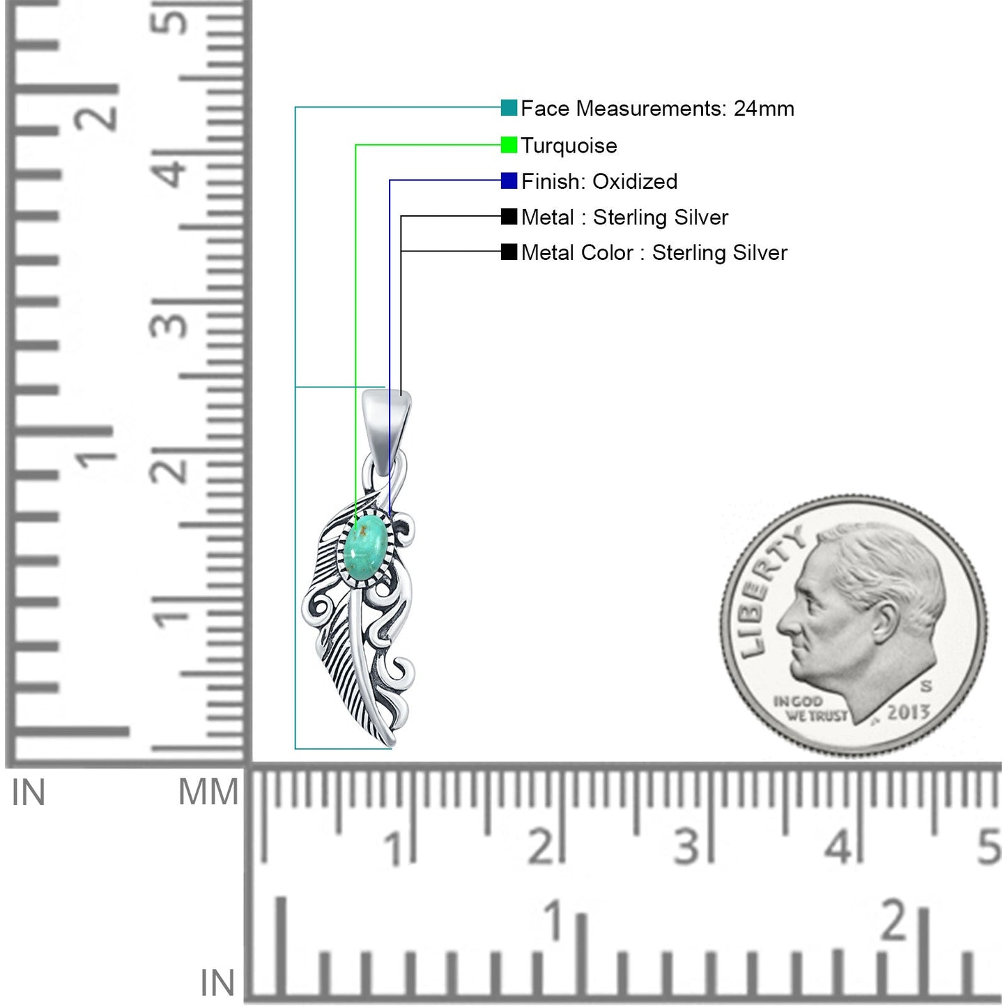 This oval Turquoise feather filigree pendant necklace features a shimmering 24mm opal set in an oxidized 925 sterling silver frame with delicate feather and filigree detailing. Perfect for wholesale vintage-style silver jewelry collections, it offers symbolic charm and elegant design for nature-inspired or spiritual jewelry lines.