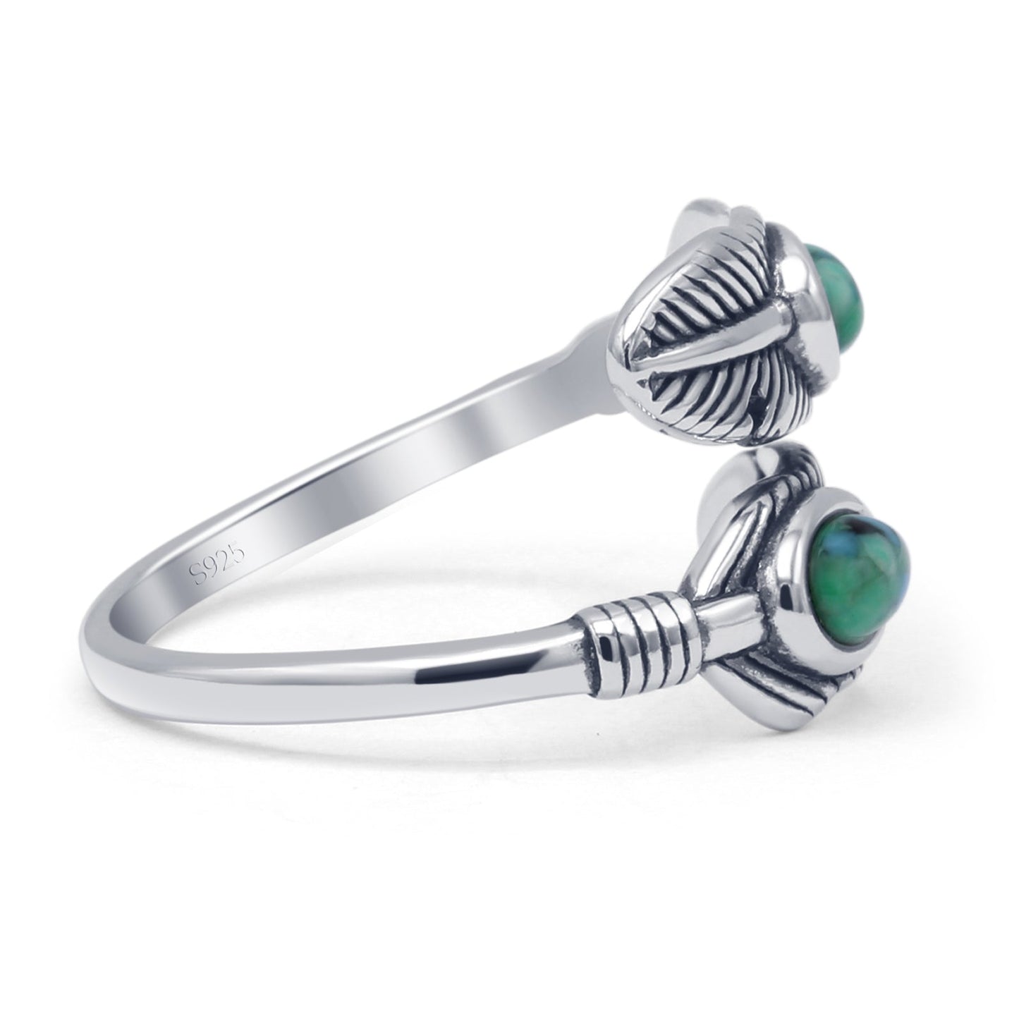 ☉Ring Design: Oxidized Oval Turquoise Feather Ring.