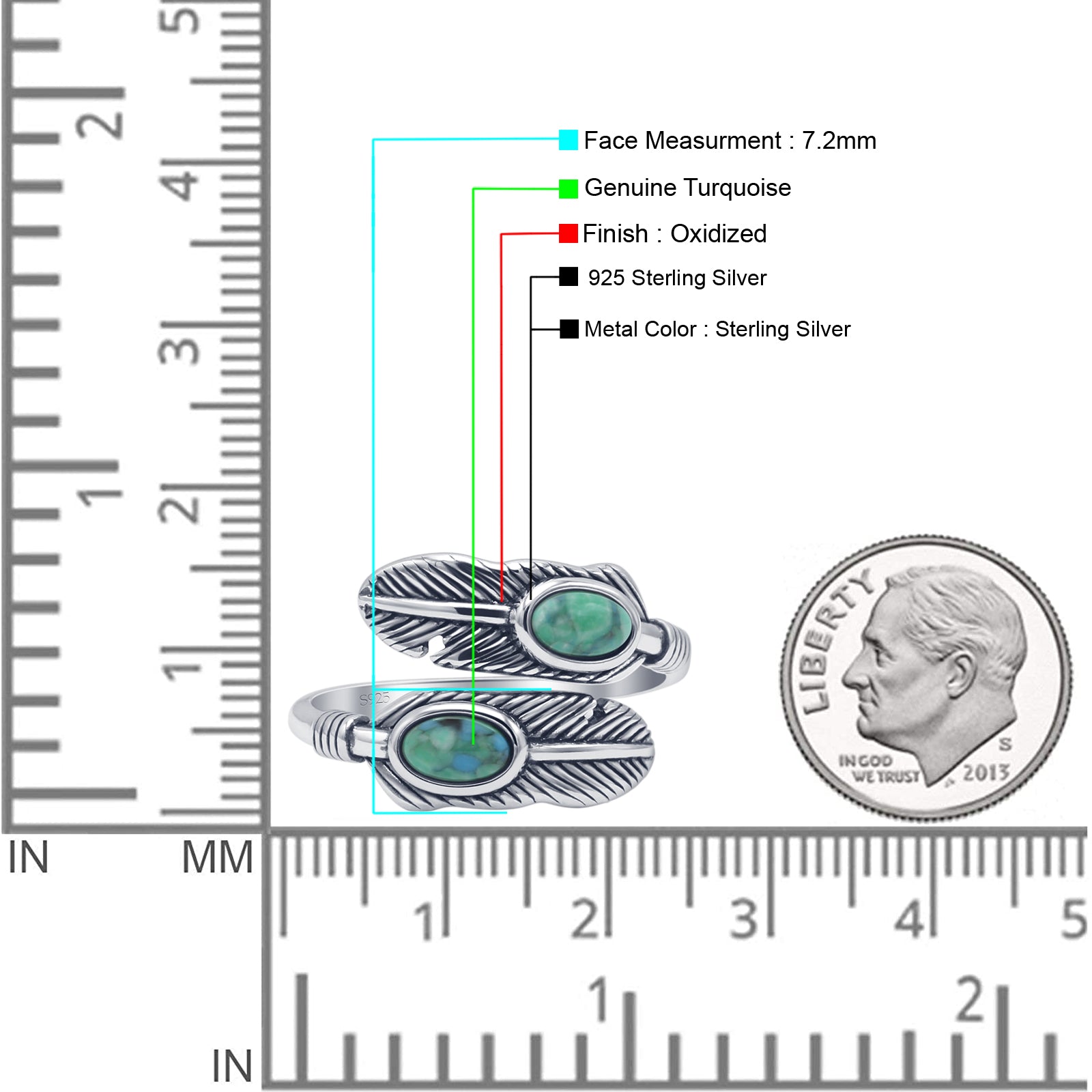 Oval Turquoise Feather Ring.