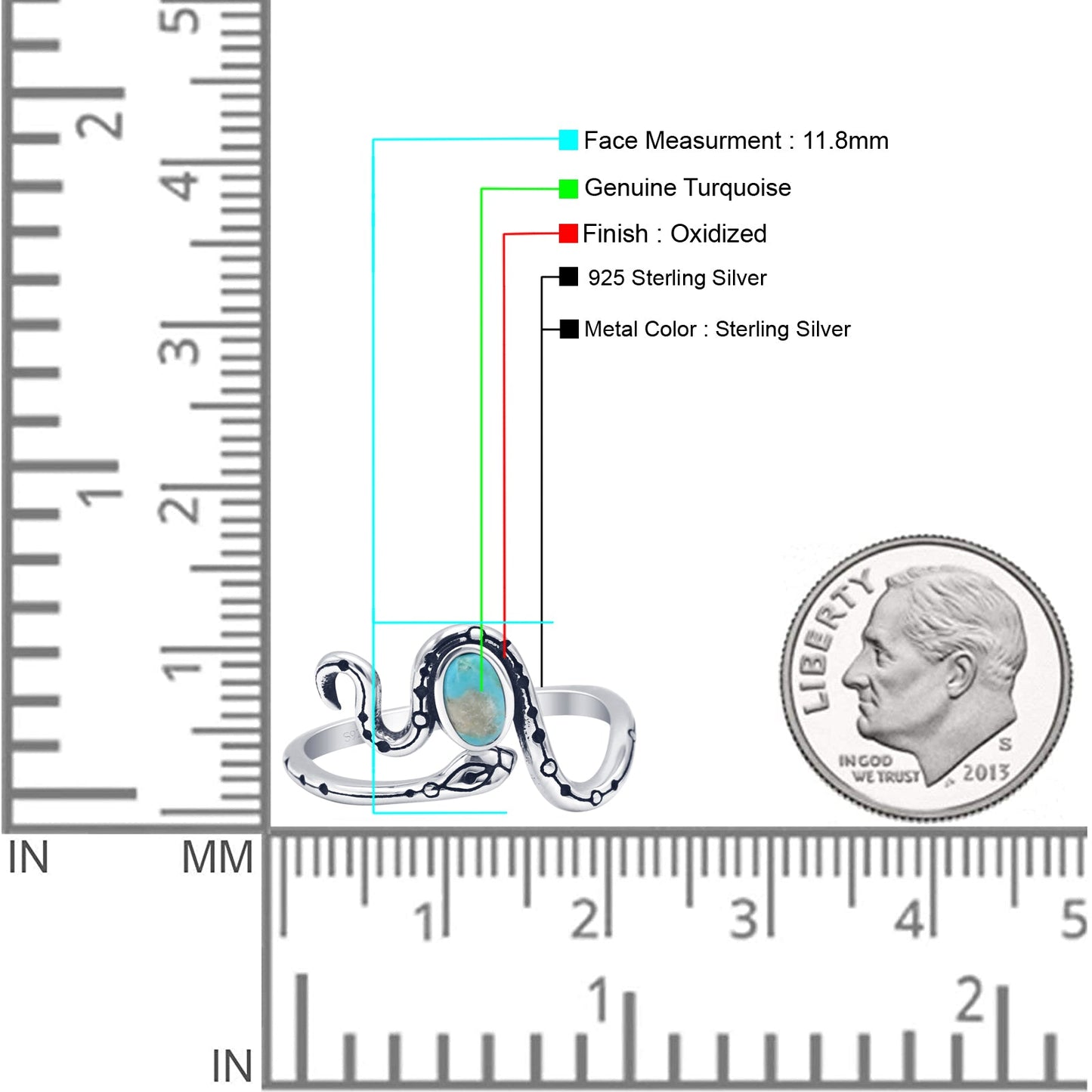 ☉Ring Design: Oxidized Oval Turquoise Snake Ring.