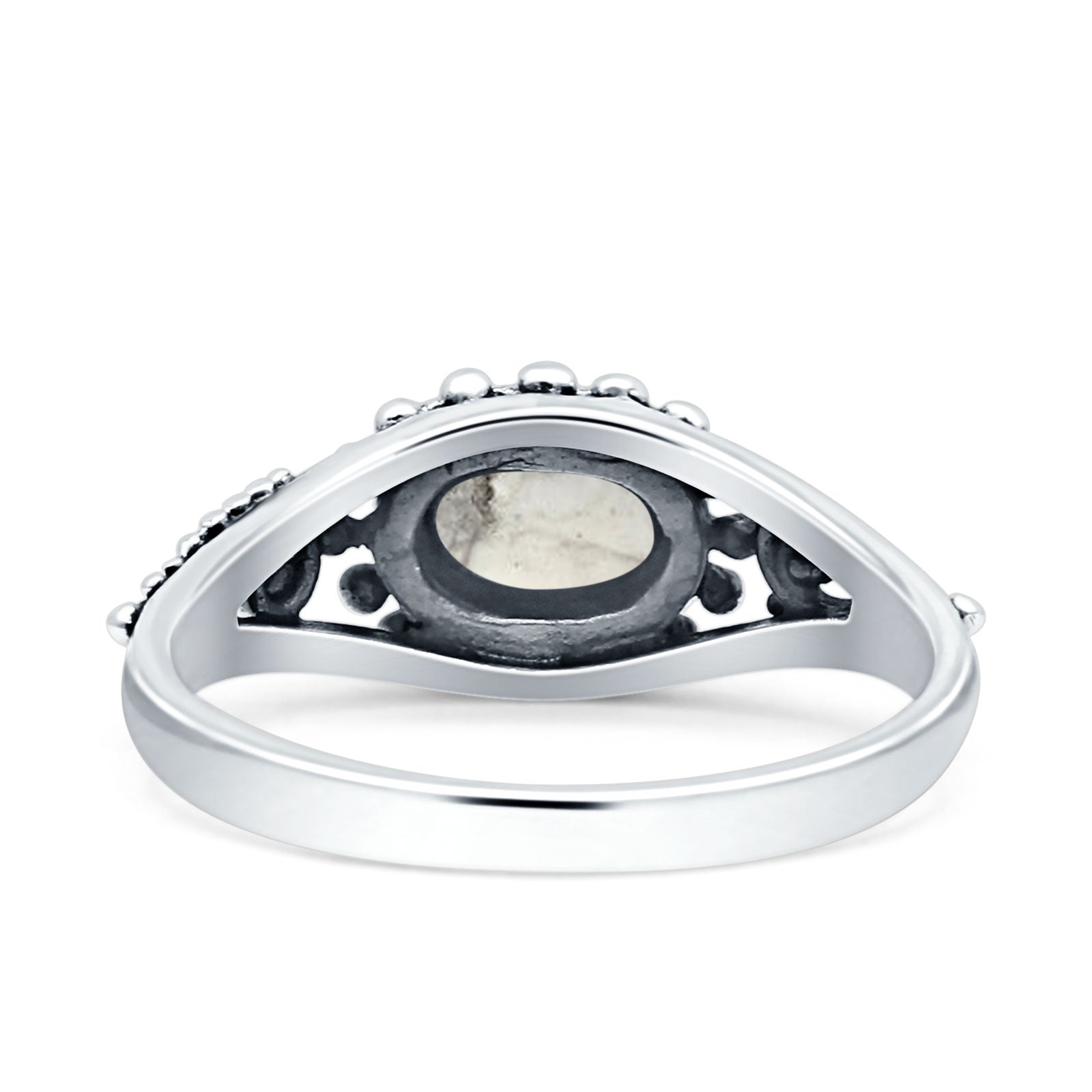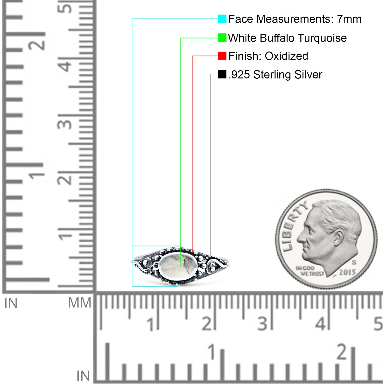 This oval shaped White Buffalo turquoise beaded ring, made in solid 925 sterling silver with an oxidized finish, is made using a unique natural stone with bead detail, an original piece in vintage style ideal for wholesale jewelry lines.