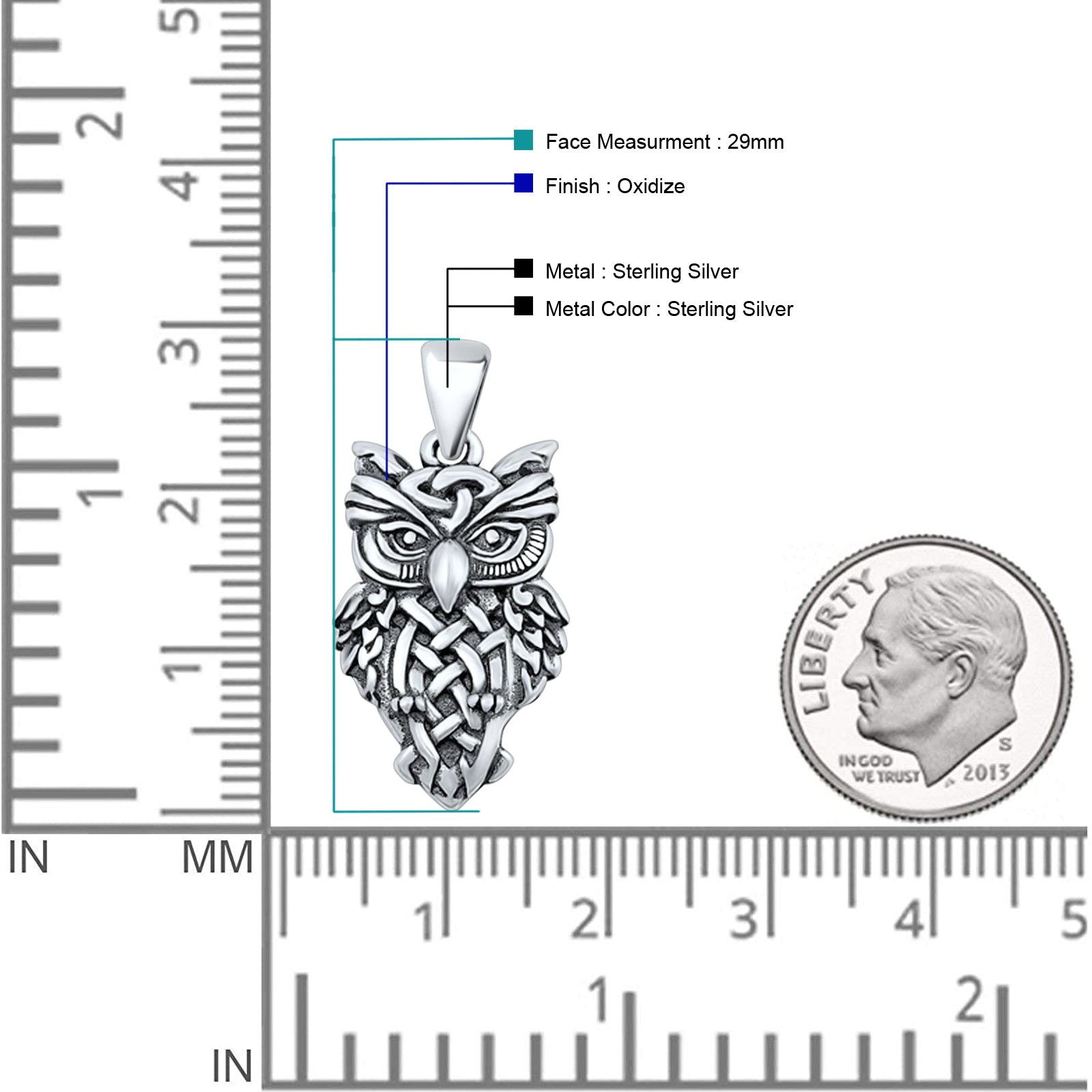 This 29mm owl charm pendant necklace is made from 925 sterling silver and features a vintage oxidized finish. It is hung on a 1mm bead chain and includes a detailed owl design to represent wisdom. A great piece for wholesale jewelry assortments for nature or spiritual theme. Great for gifts as well as everyday wear!