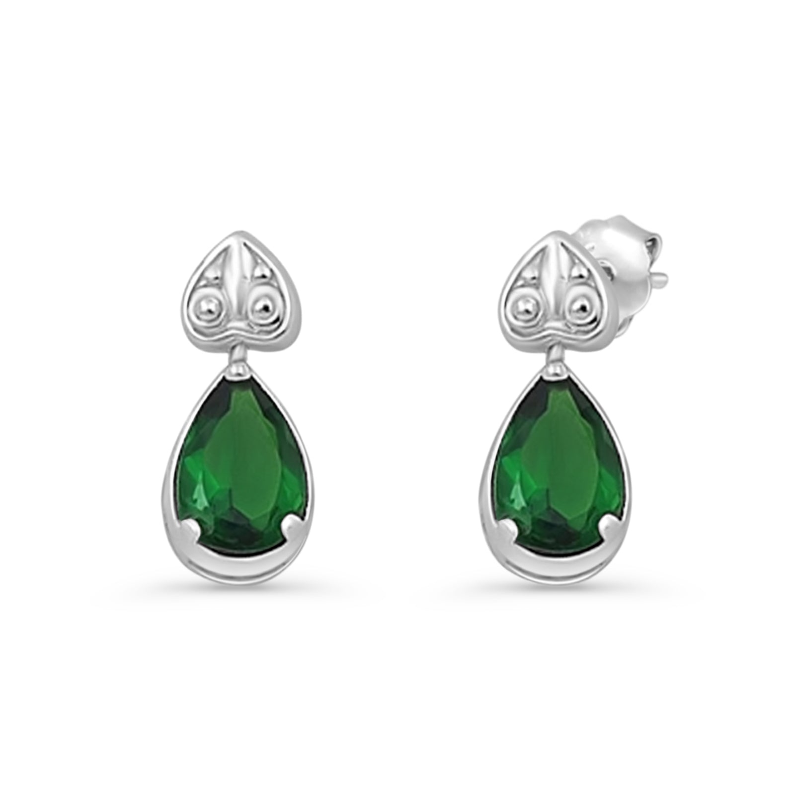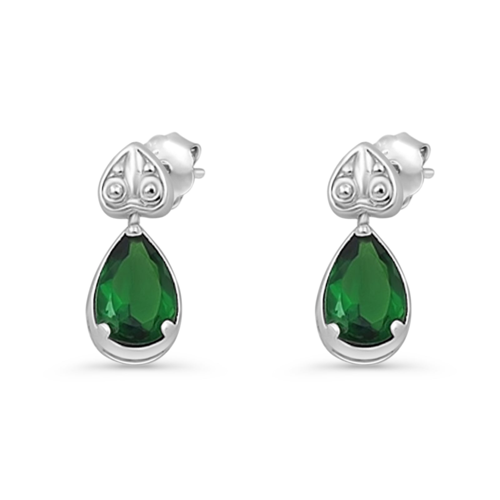 ☉ Design: Pear Green Emerald CZ Dangle Stud Earring