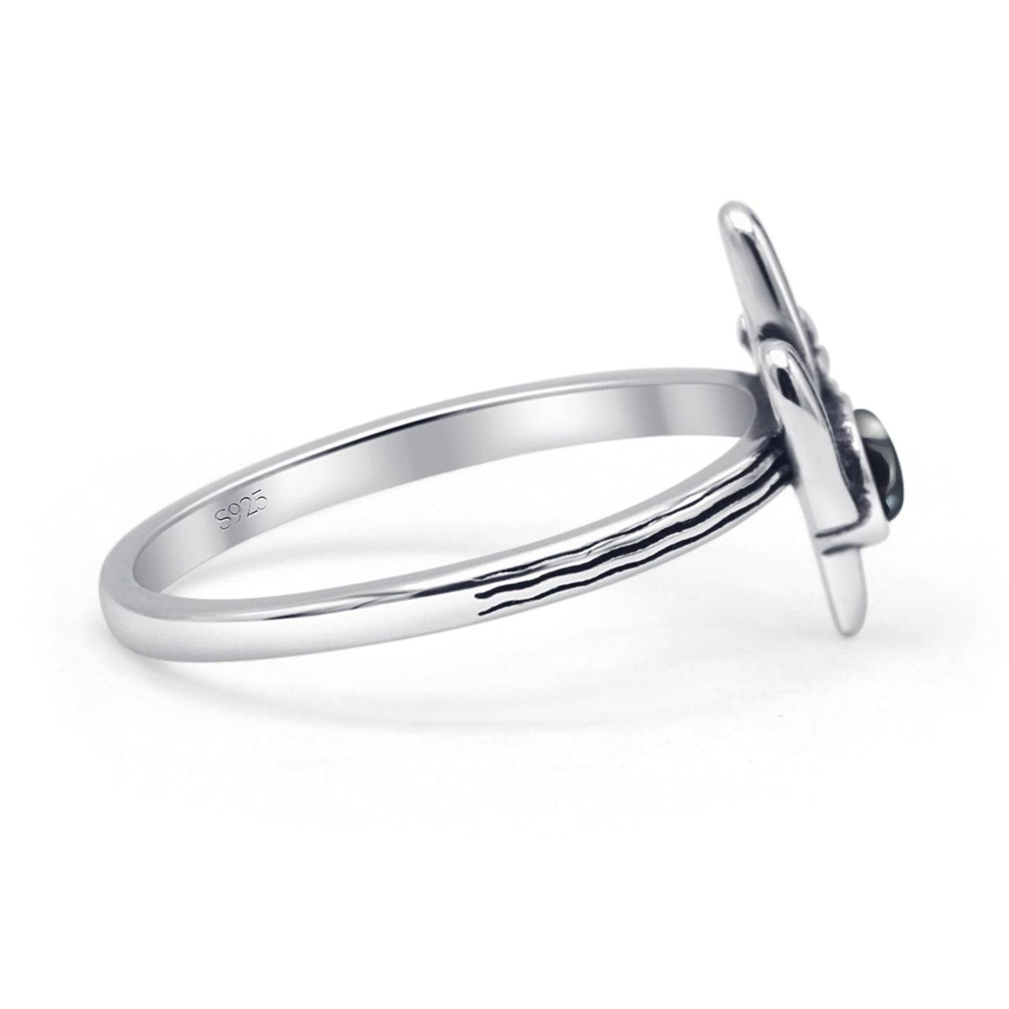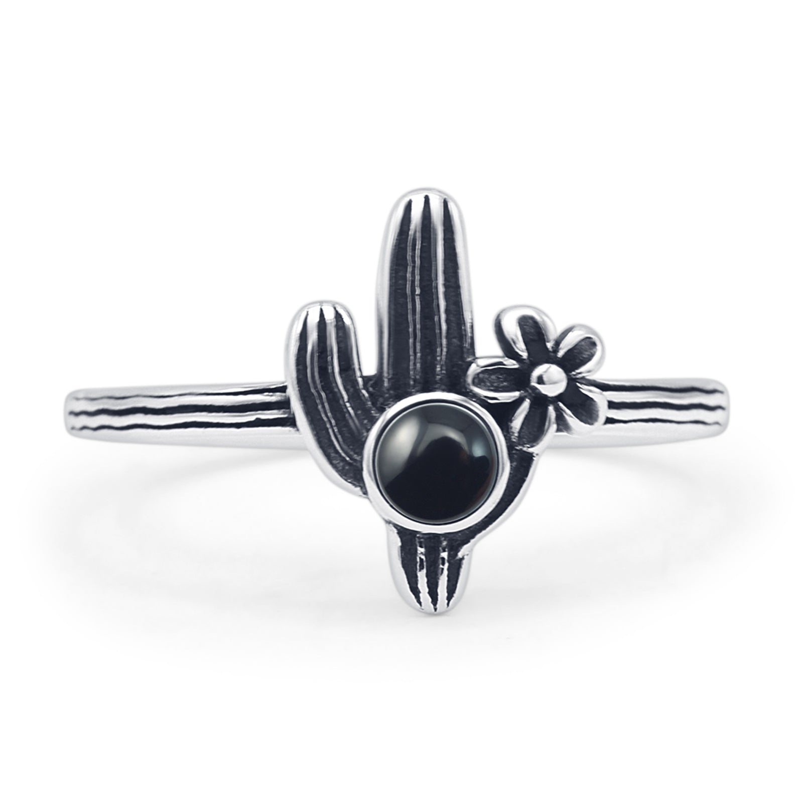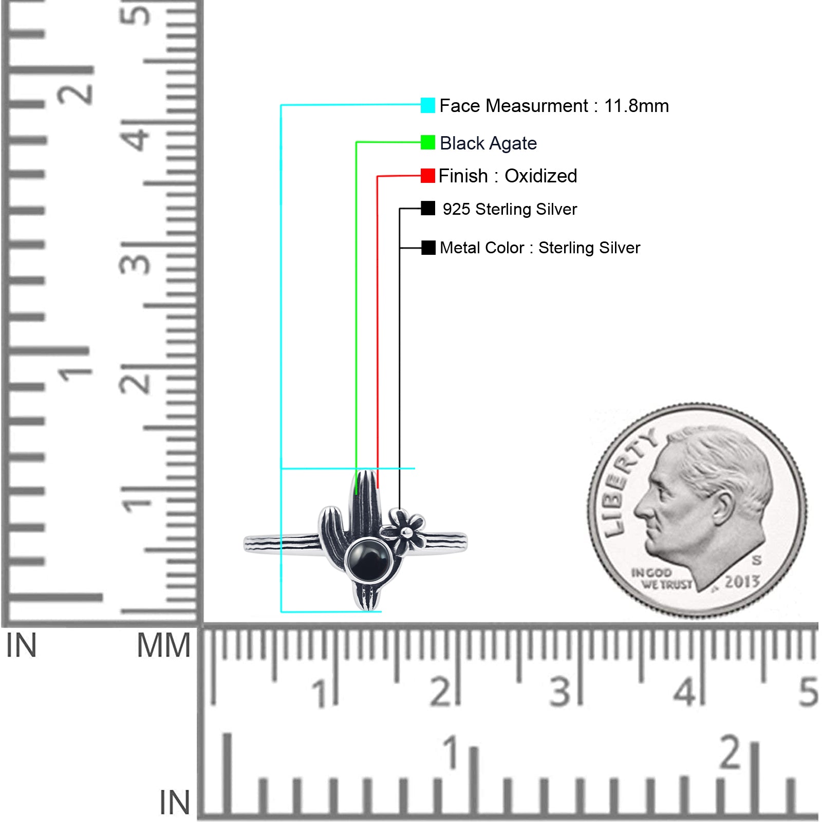 ☉Ring Design: Round Black Agate Oxidized Flower Cactus Ring.