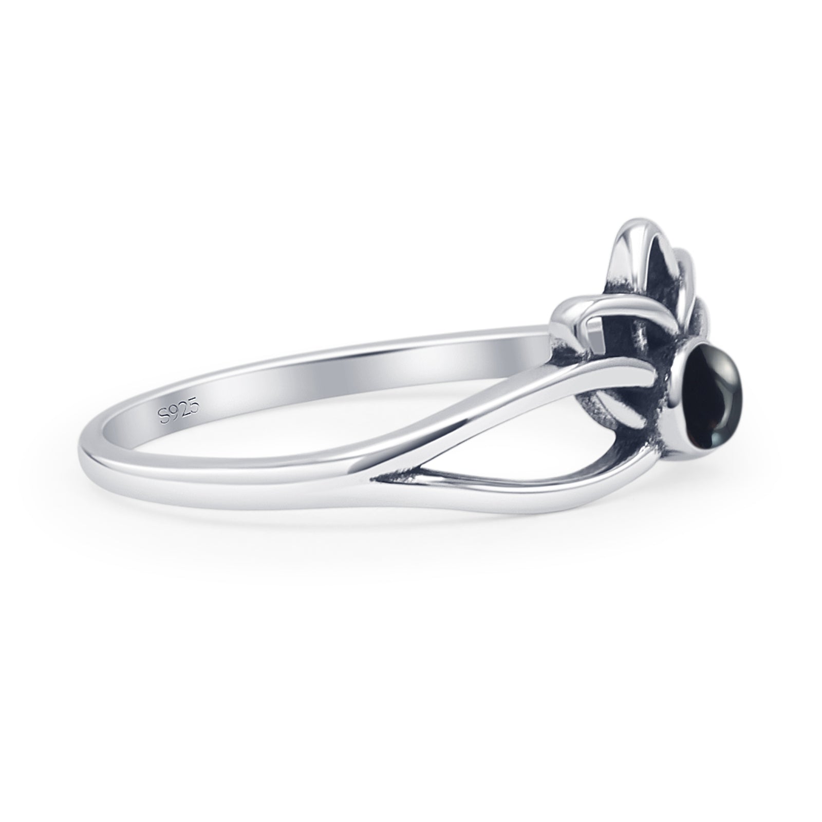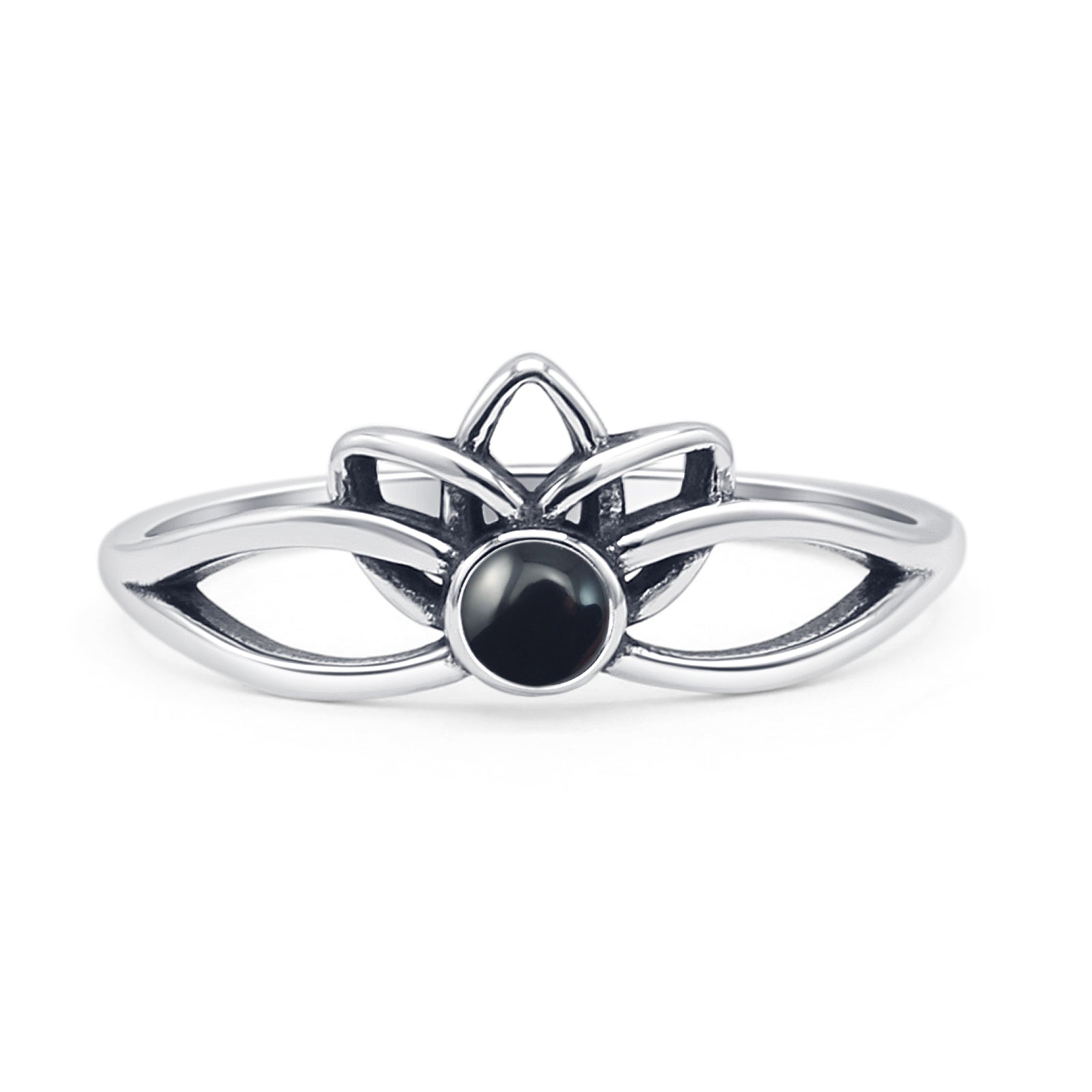Round Black Onyx Lotus Ring.