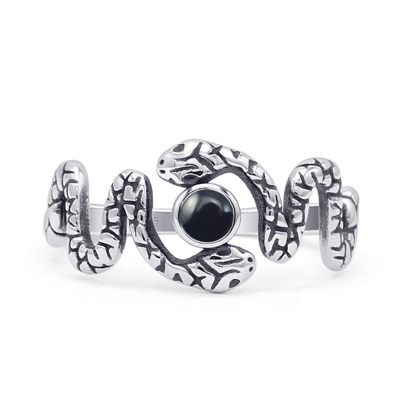 Round Black Onyx Snake Ring.