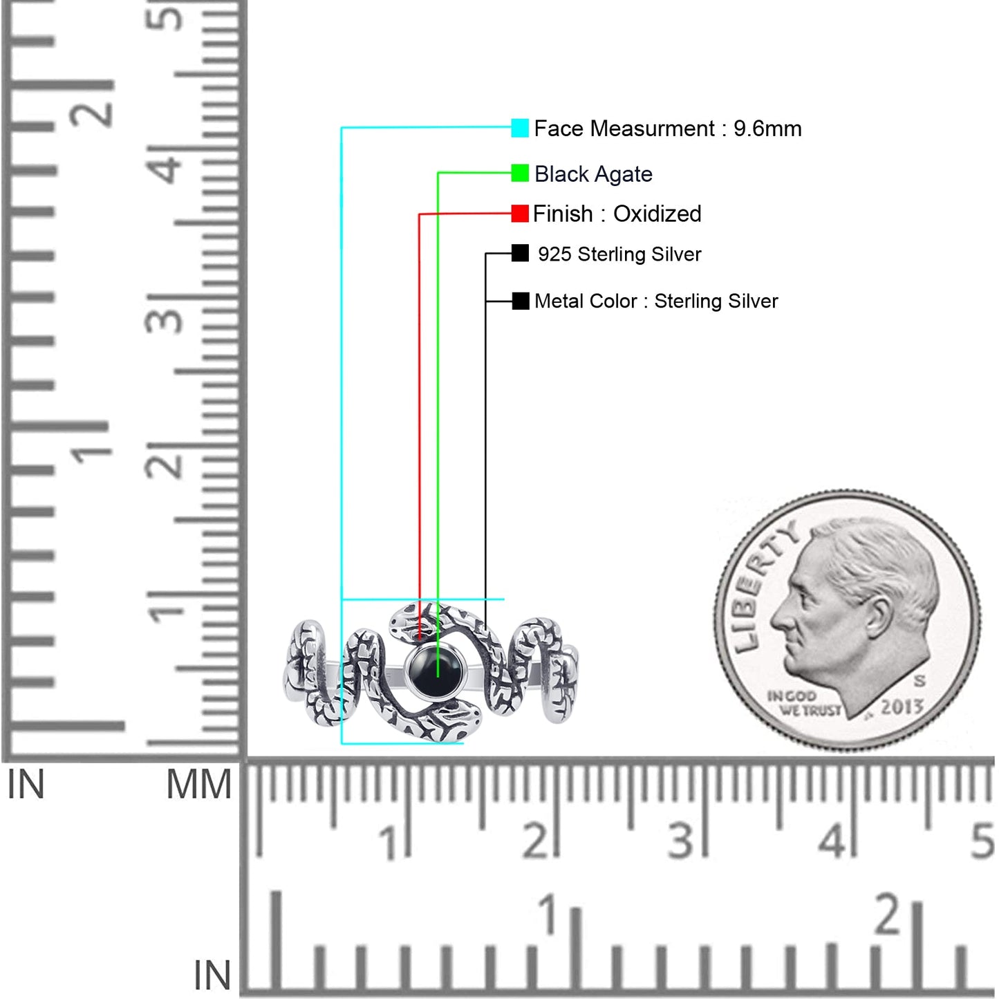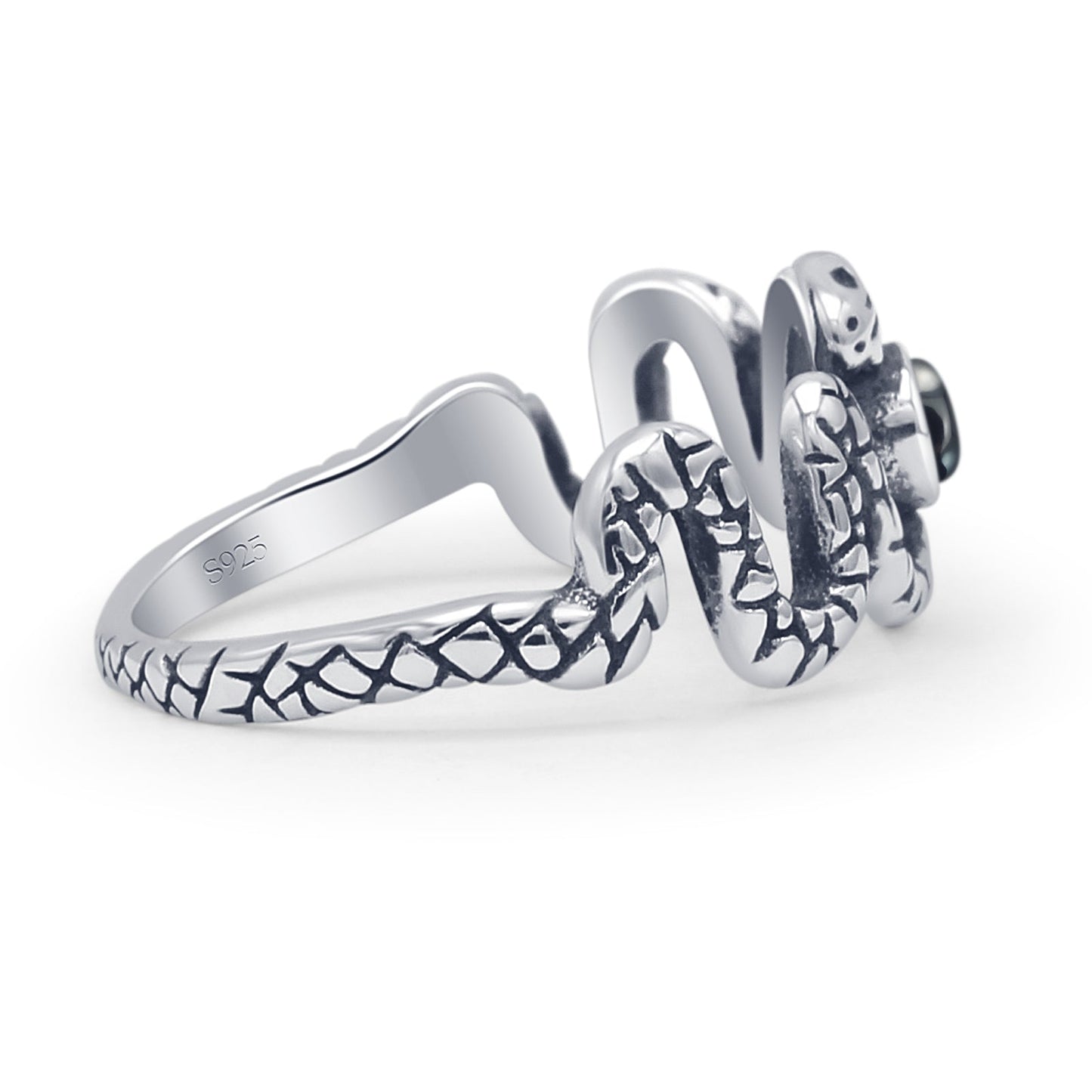 Expressive elegance at its finest with this minimalist 9.6mm snake ring utilizing oxidized 925 sterling silver with an antiquated-style finish. The coiled serpent symbolizes transformation and power, making it an impactful statement ring and a great gift for her.